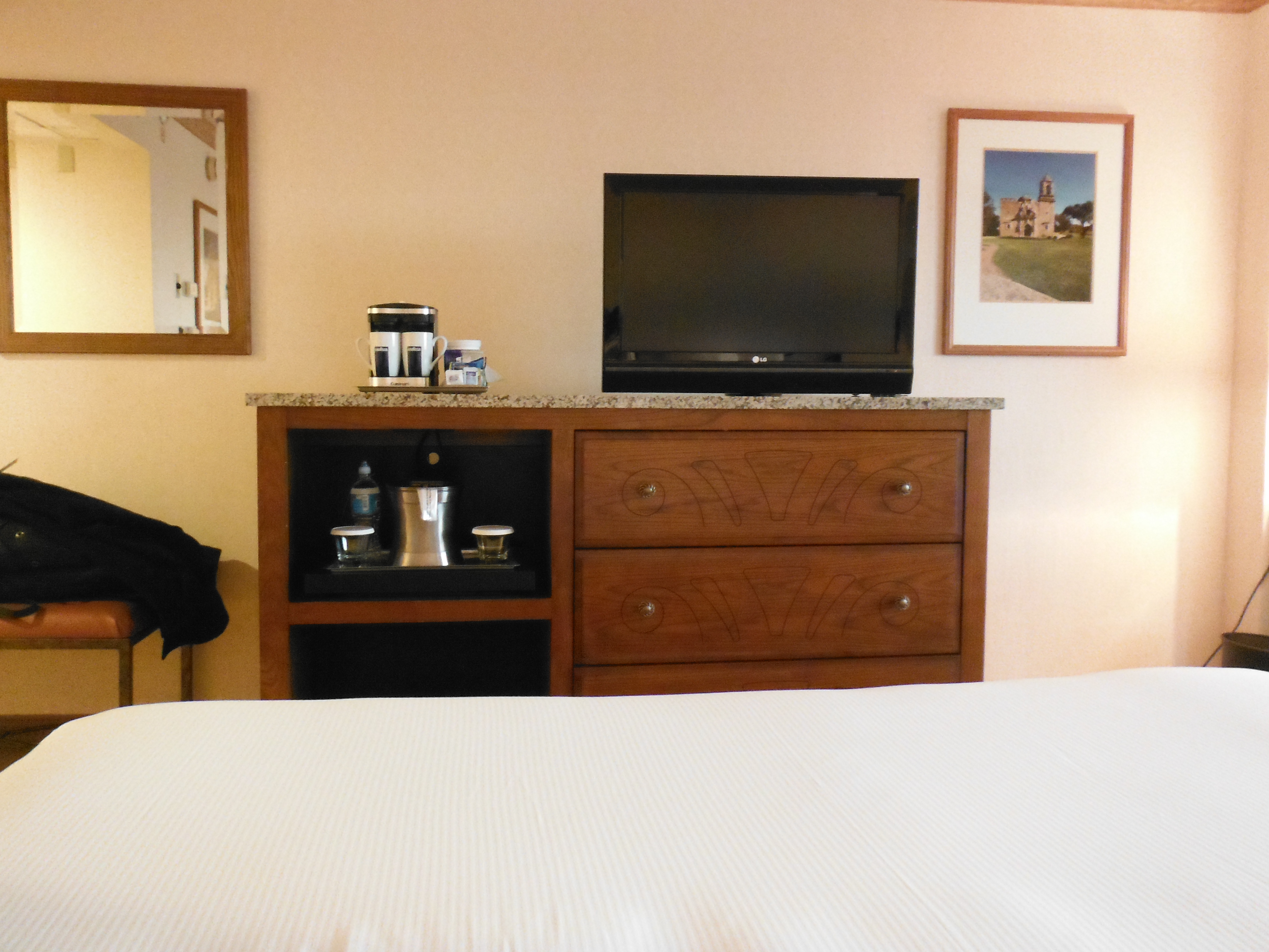 So let’s start with the ugly and there was no Doubletree about it, was the Doubletree. The entrance as you can see was awful, the 6th floor was being remodeled and my room had issues, which as a remodeled room were hard to believe. This hotel was billed as walking distance to the Alamo and River walk, the former was 1.7 miles and the heart of the River walk was over a mile. Frankly the surrounding area of the hotel, minus the USTA, courthouse and police station which were on each corner of the hotel, were the only safe looking places, until you were at the River Walk. So walking seemed out of the question. At least they had a free shuttle that runs on the hour from 8 AM- 10 PM.