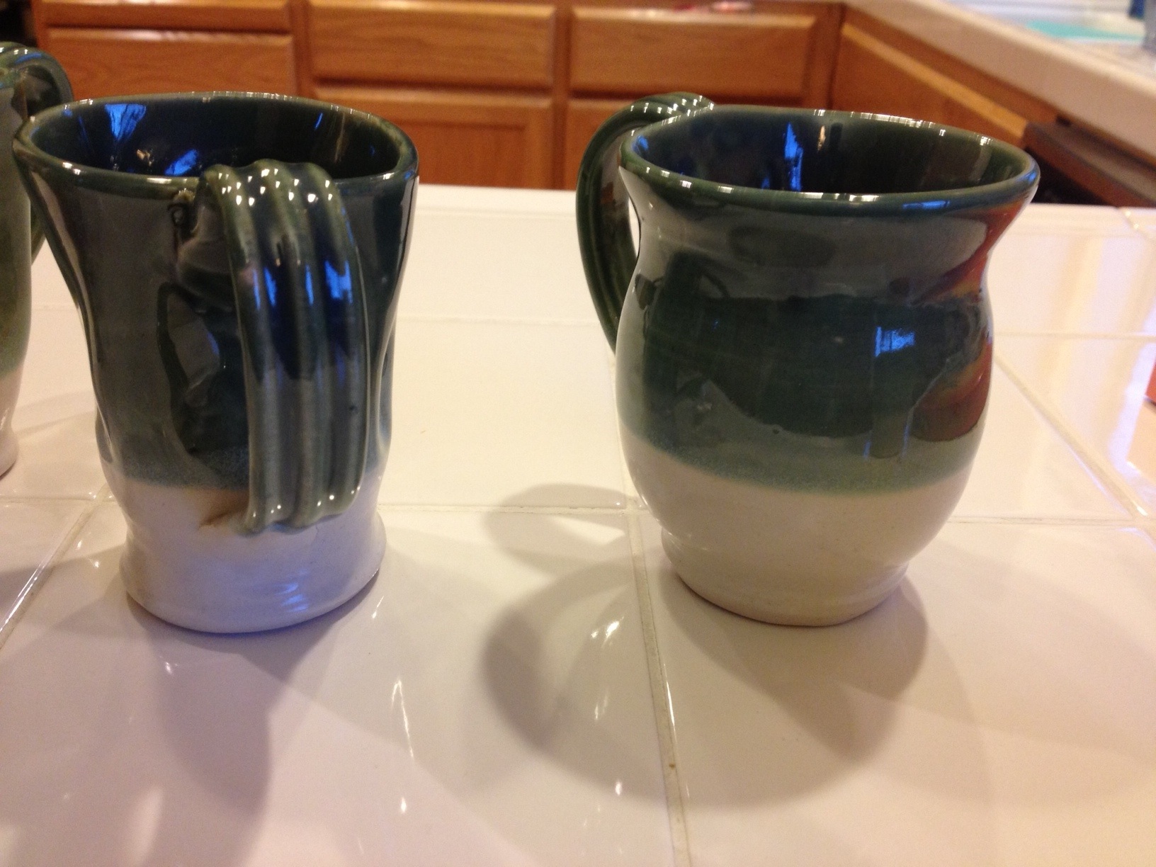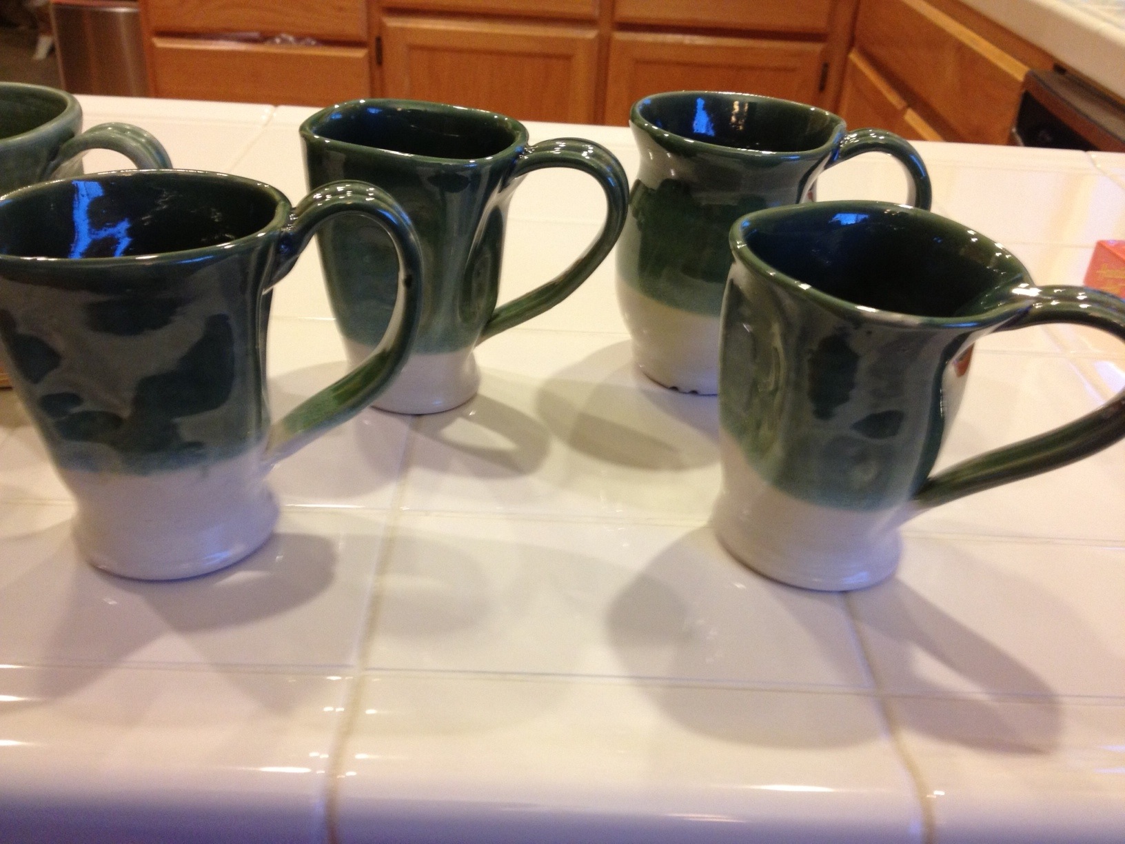 Well for all of you waiting patiently for my final pottery photos here they are. It’s like Christmas when you go into the studio and you have new presents to open. In this case I was pleasantly surprised that I got all 8 cups today.