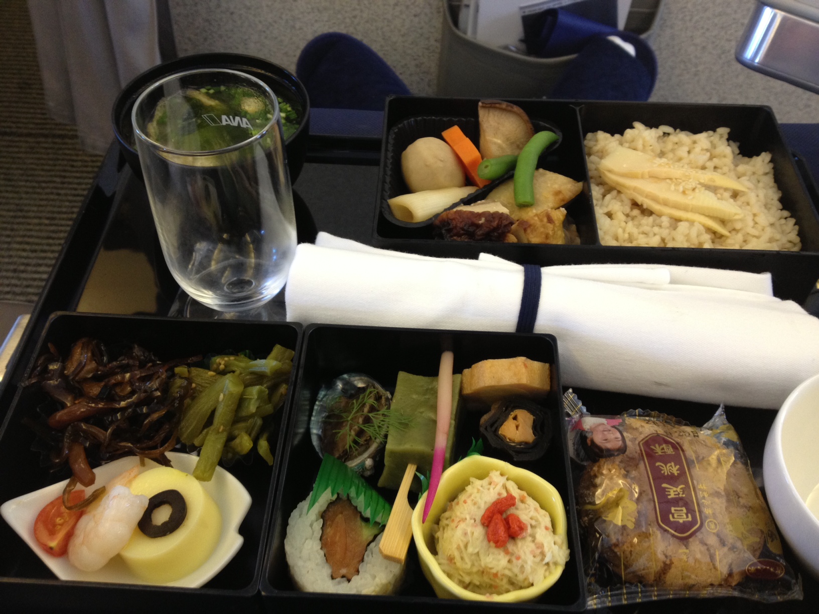 On my way out of Thailand I got to fly ANA one of two National carriers out of Japan. I had flown them before also in business like this flight but that was back in 2007. Although a very nice flight, after the heals of my Thai experience, it was just ho hum. I know that’s not a fair assessment, since if I had this seat and this crew on any US carrier I would be in hog heaven. The part that was so amazing about this flight was the meal I had, it was the perfect Japanese style sushi box, expertly prepared and incredibly tasty. I can’t believe how good the food was for 35,000 feet in the air.
