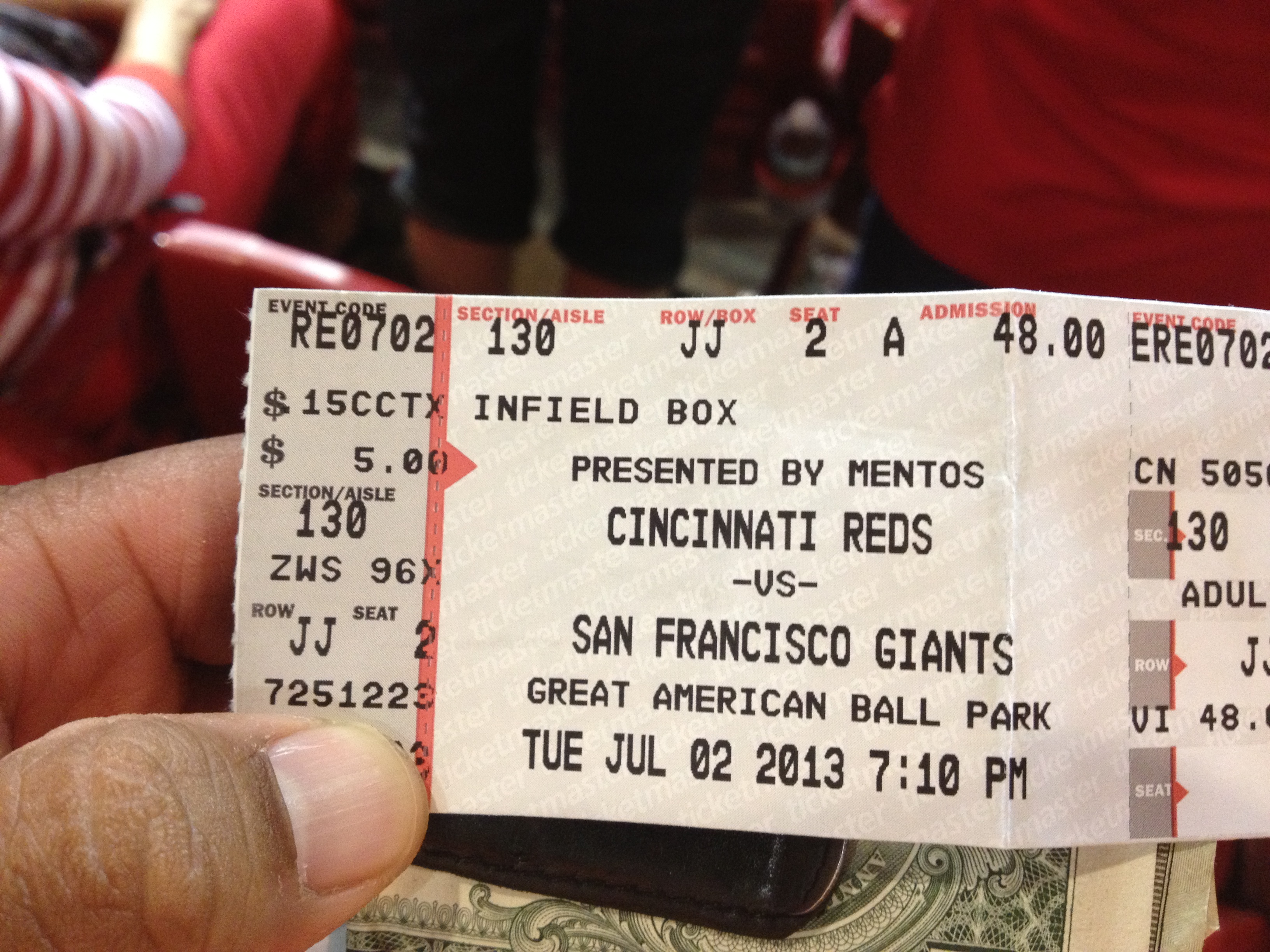 Ok first off let me say that if I could pick I would rather see a No Hitter for my team and not against. But since you can’t pick if you’ll ever get to see a No Hitter or a Perfect Game live I’ll take what I can get. “T” and I were in Cincinnati for the second part of our baseball road trip. The Giants lost two of three in Colorado (they won the game we didn’t go to). They had four games in Cincy and we were seeing the first two there. We still had high hopes for a few wins, but with the way the team was playing my hopes were not high.