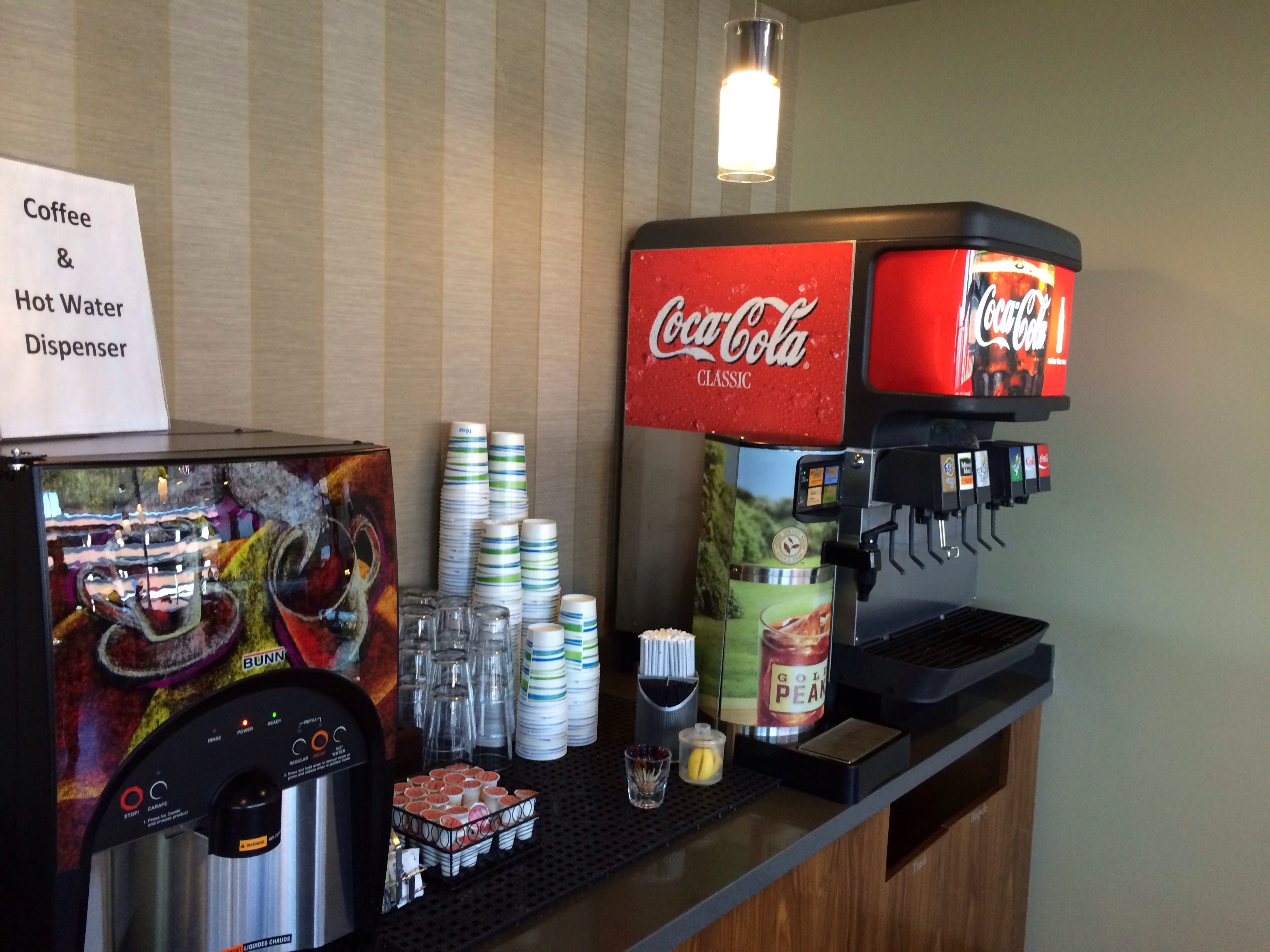 In any event the lounge was really nice, it still had that new car feel. It was light bright and airy, and had four distinct spaces to lounge in. Plus a bar area with soda fountains, ice tea fountains a bar with a pretty decent complimentary drink list and a light snack area. There were several large tv’s, a computer area to use with printers and then a work area for you to hook up your own laptop (probably about 8 stations for this). Additionally they had two showers, I didn’t check them out, but I imagine they were just as nice as the rest of the lounge.