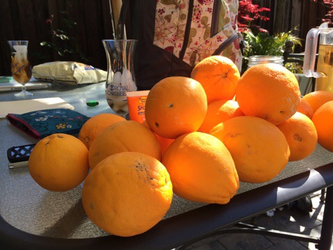 We have a nice dwarf orange tree in the backyard, it’s about 15 years old and some years it’s more prolific then others in the orange production department. This year was no exception it provided us a really great harvest. I made sure it got regular watering and fertilizer and was rewarded with a bountiful harvest. Because of the great sun this year and ample water we had some huge results. The oranges are about the size of small softballs and easily weigh one to one and half pounds apiece. We’ve enjoyed eating them, but it was time to get some juice.