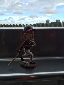 Besides the very good weather, and really good company it was bobble head day, and they were giving away a Duane Kuiper in a classic Cleveland Indians uniform. Even though he will always be a Giant in these parts he played the majority of his career in Cleveland. Since the Indians were in town which only happens every six years it was appropriate to give em out.