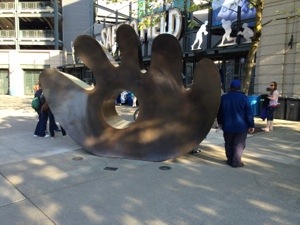 I had a great visit to Seattle this week. I got to visit two old friends one I haven’t seen in over 20 years. It was a good work week, but the best part of the trip was going to Safeco Field and watching the Mariners take down the Tampa Bay Rays 12-4. Wow what a game. This metal sculpture is outside the left field entrance and is a neat homage to the old 20’s style gloves.