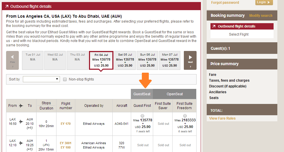 Then finally select book with Etihad guest miles. Tip here, just bookmark the page so all you have to do is fill in the pertinent information.