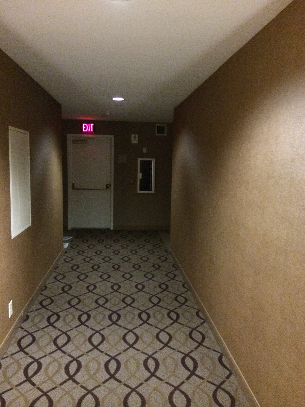 The last item I think was the worst, and really bugged me. No pun intended. The hotel was quiet, I’m guessing not even 30% full. On my hallway, there were maybe three rooms occupied, based on newspapers left outside the doors and do not disturb signs. I could be wrong though. Why do I care? Well my room was at the end of a hall that was poorly lit, and there were blind spots at the end of the hall by my room. No the lights were not out or turned off, there just weren’t any. This picture doesn’t show how dim it was, but it just made me uneasy. I had no reason to think I was in danger, but as a solo traveler, these are things I watch out for. I should have reported it to the hotel, I didn’t. I know not my finest moment, but what do you say? I mean it was not pitch black just poorly lit.