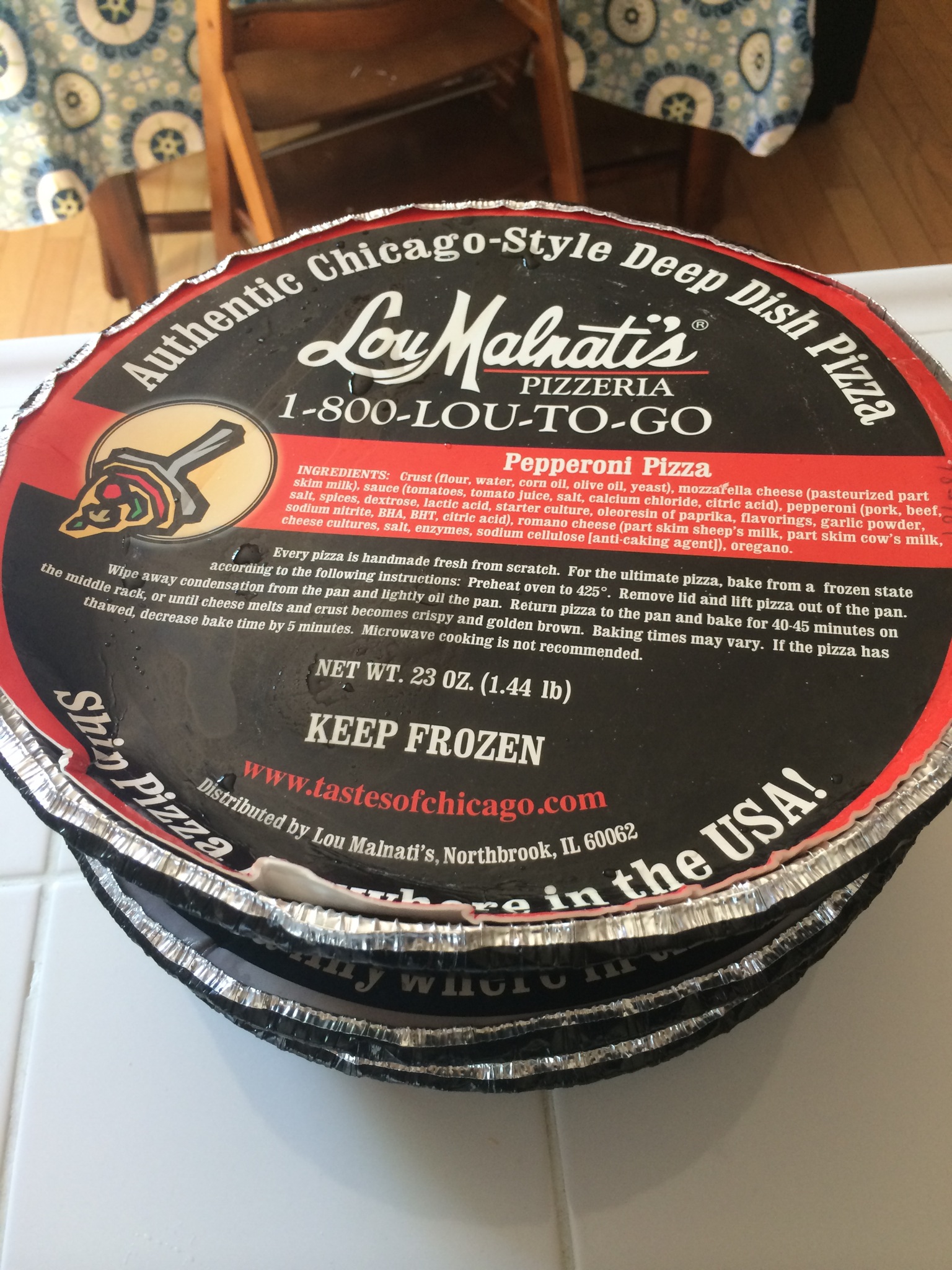 Lou Malnati’s is damn good pizza, I repeat damn good pizza. They are a Chicago institution and make a mean pizza. They have an amazing butter crust, the perfect amount of cheese and simple toppings. In this case I picked up three of them (sausage, pepperoni and vegetarian). They offer premade fresh frozen pizzas, so I had to take some home so my wife could experience it. Since this was not in the original plan, I had to confirm that the hotel would keep them frozen in the kitchen then I hit up Trader Joe’s for an insulated cooler bag, and I was set.