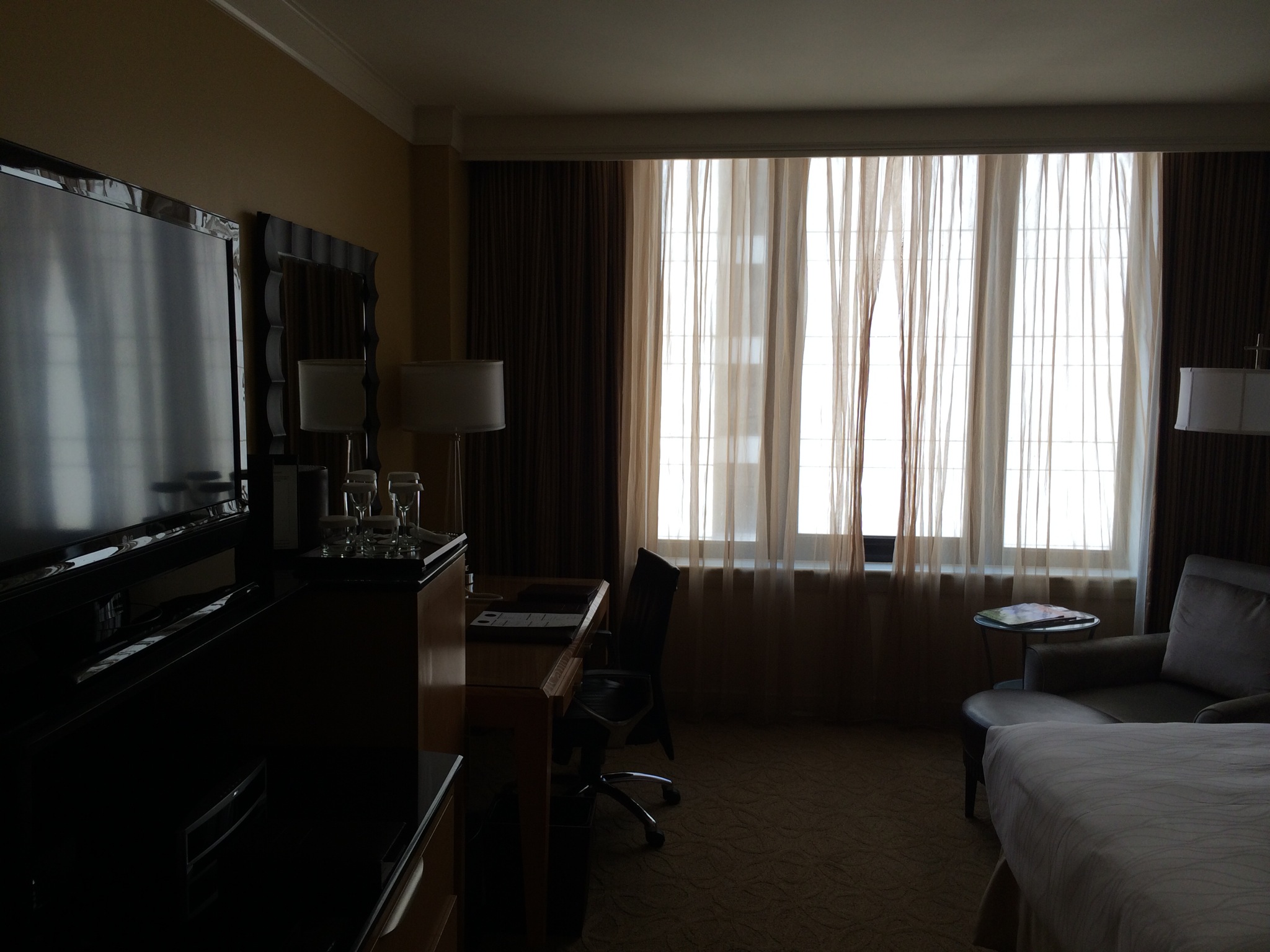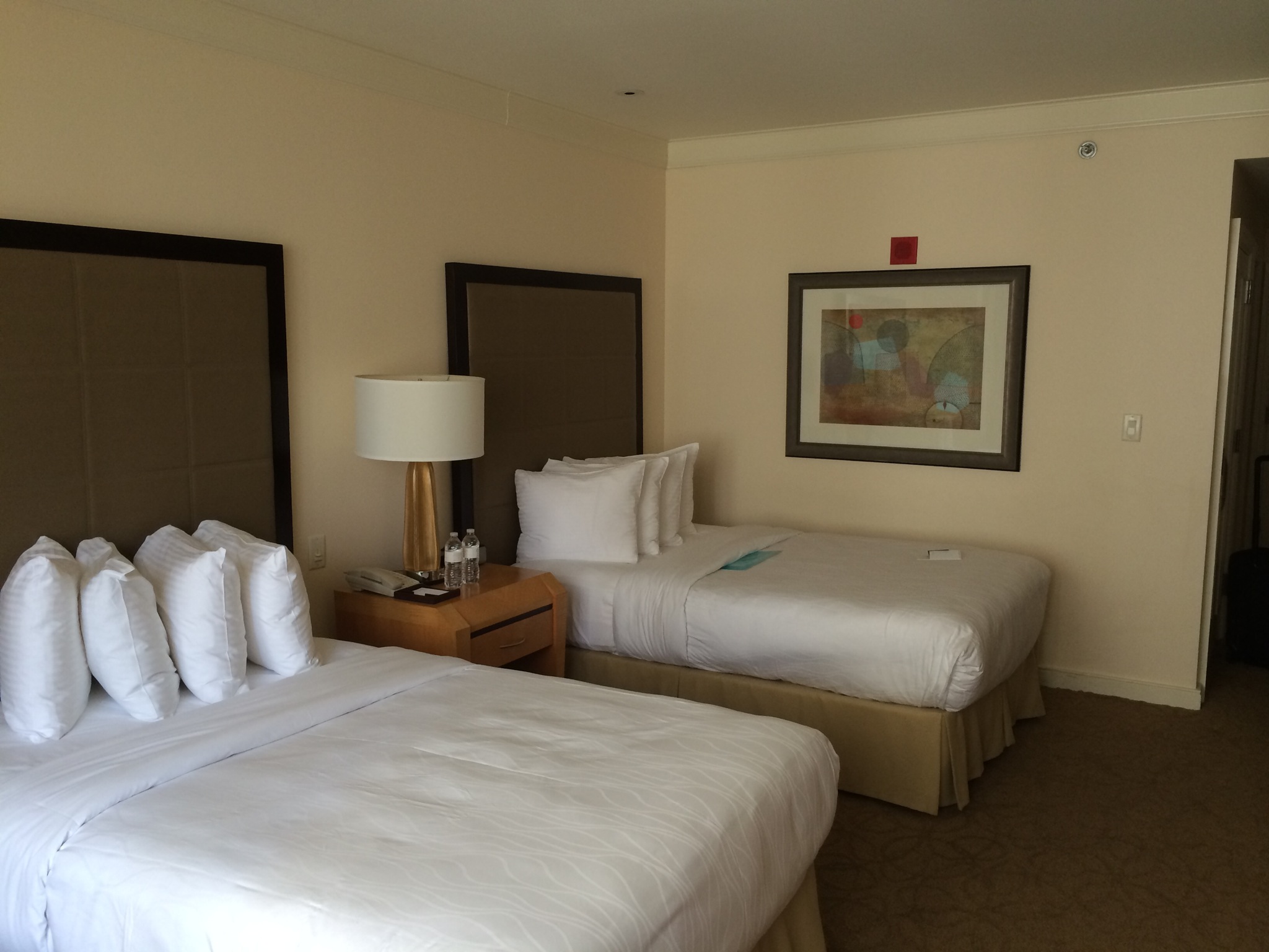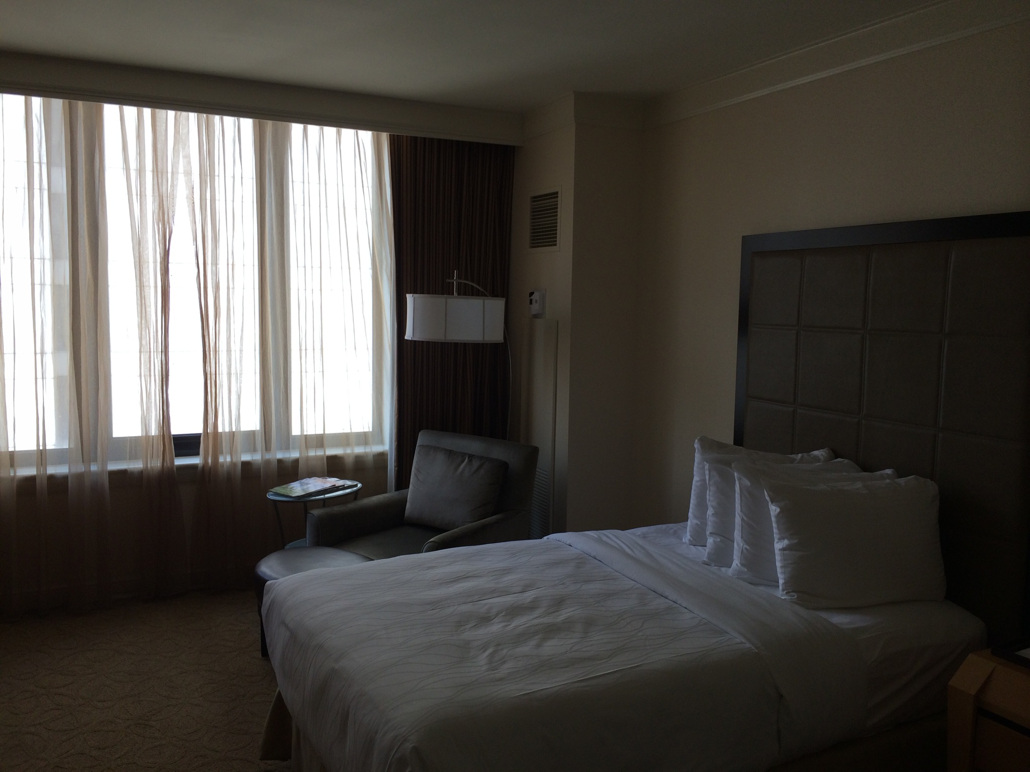 The hotel has 312 guestrooms and 33 suites, with 4 terrace suites and 1 Grand Terrace Suite. At check in I asked if we could get an upgrade to a suite or bigger room. I had booked a super cheap room almost eight months ago when the rate for a standard room was under $200, when the usual rate is close to $300, so frankly I had no expectations. Unfortunately because I needed two beds, and supposedly our stay conflicted with other reservations for a suite we were denied. The receptions, at least spent about five minutes trying to make it work and I appreciated that. They also gave us a few drink coupons and an extra thousand points. I’d rather have a lounge to get free drinks, breakfast and coffee in but hey they didn’t have one so what can I say. It was a nice touch for not getting upgraded.