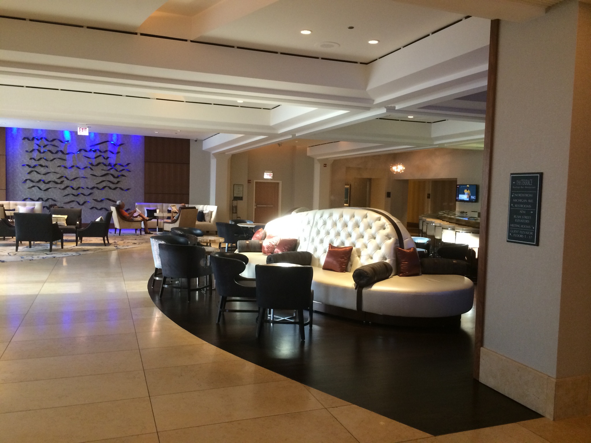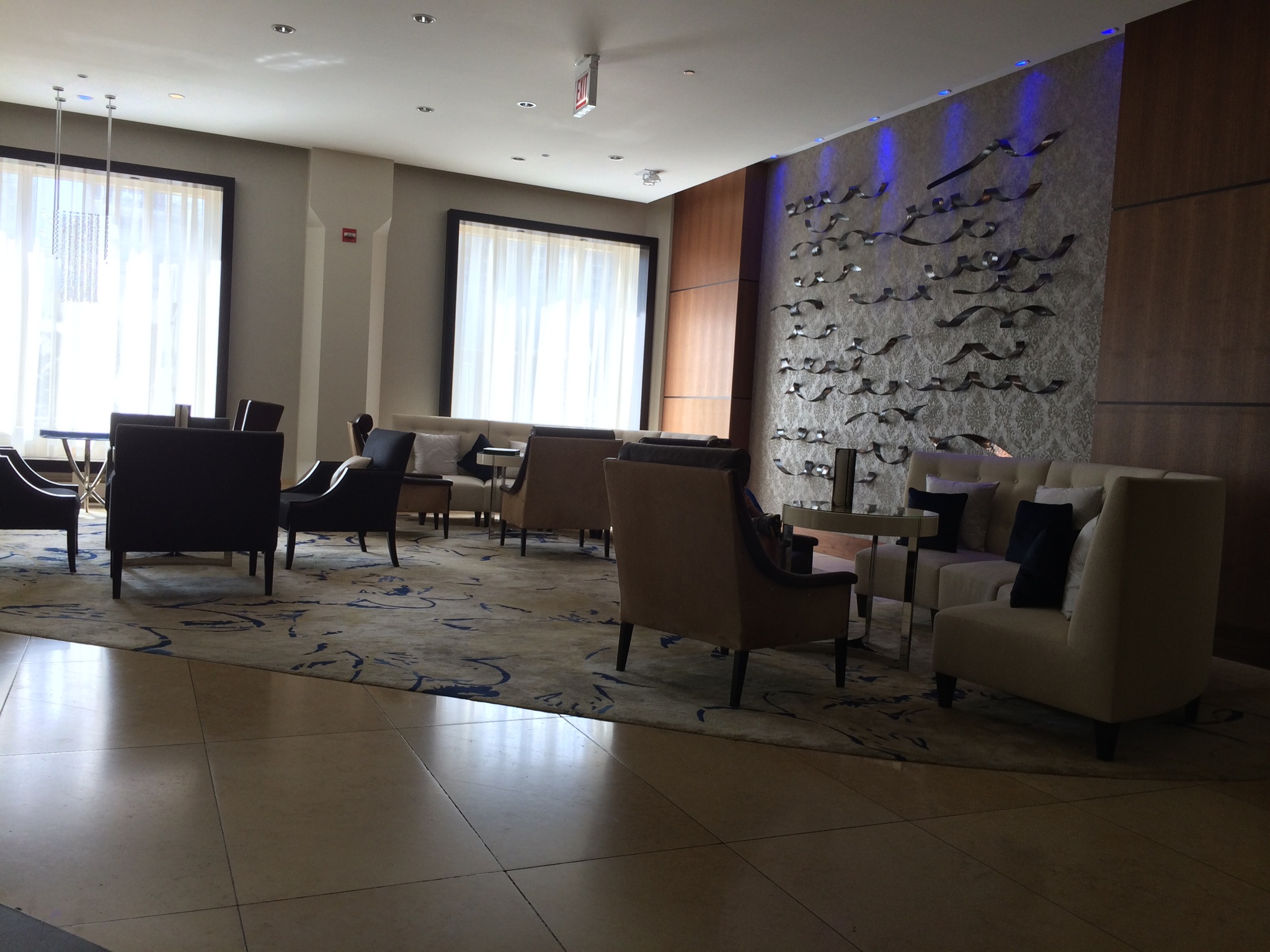 The Conrad Chicago, was no exception. Sure it’s not an amazing resort hotel like the Conrad Maldives or Bali, but for a city hotel it was good. The hotel interior was beautiful. The lobby as you can see has tons of seating, with several small intimate areas which was great. The lobby also featured a separate indoor and outdoor bar called Terraces. Unfortunately the outdoor area was closed except for my first night. I figured I’d have plenty of time to check it out, but unfortunately due to the rain and crummy weather it was always closed. Next time I need to strike while the iron is hot. That being said the bar was pretty hip, had a nice drink menu and was a nice hangout.