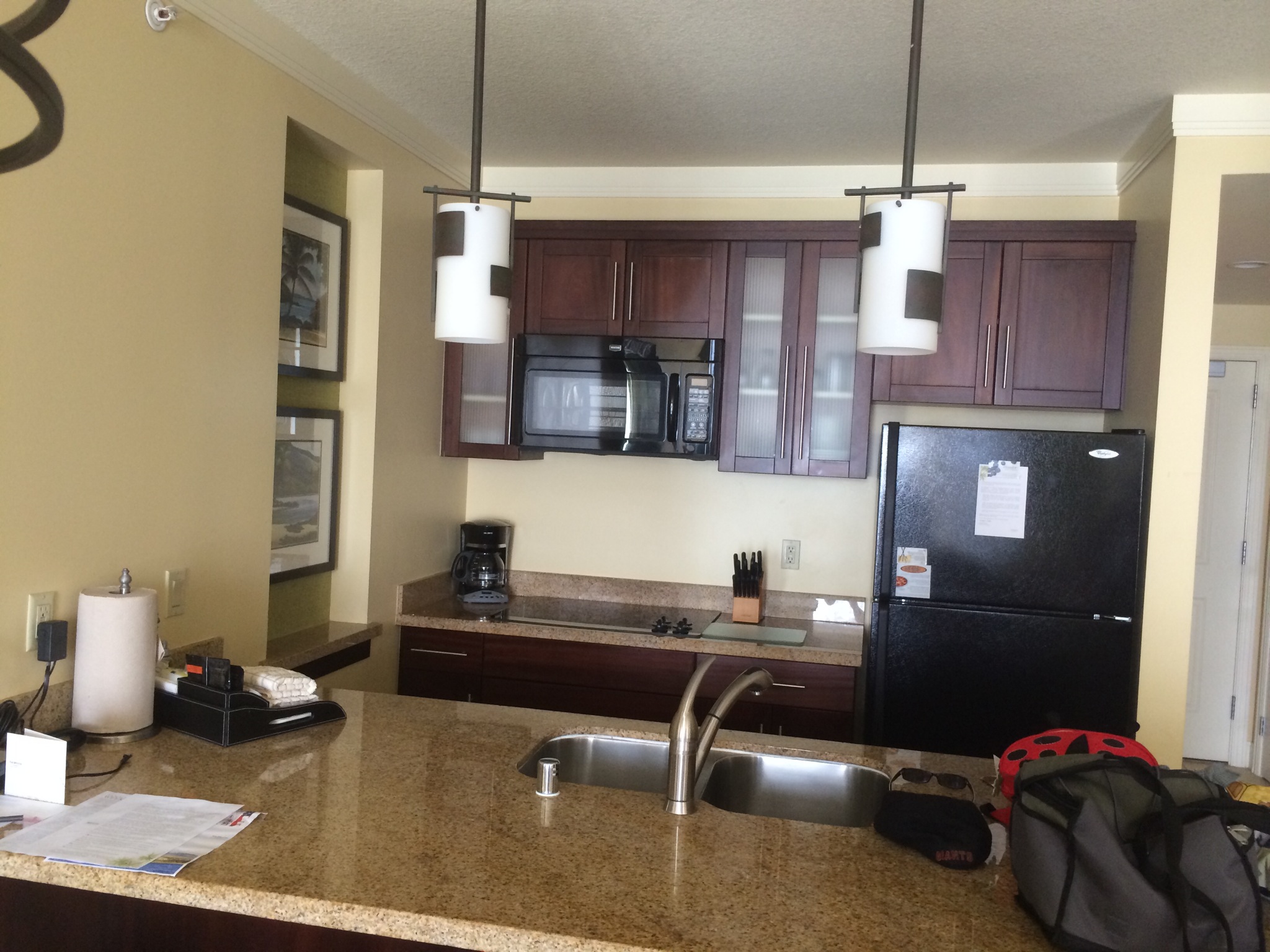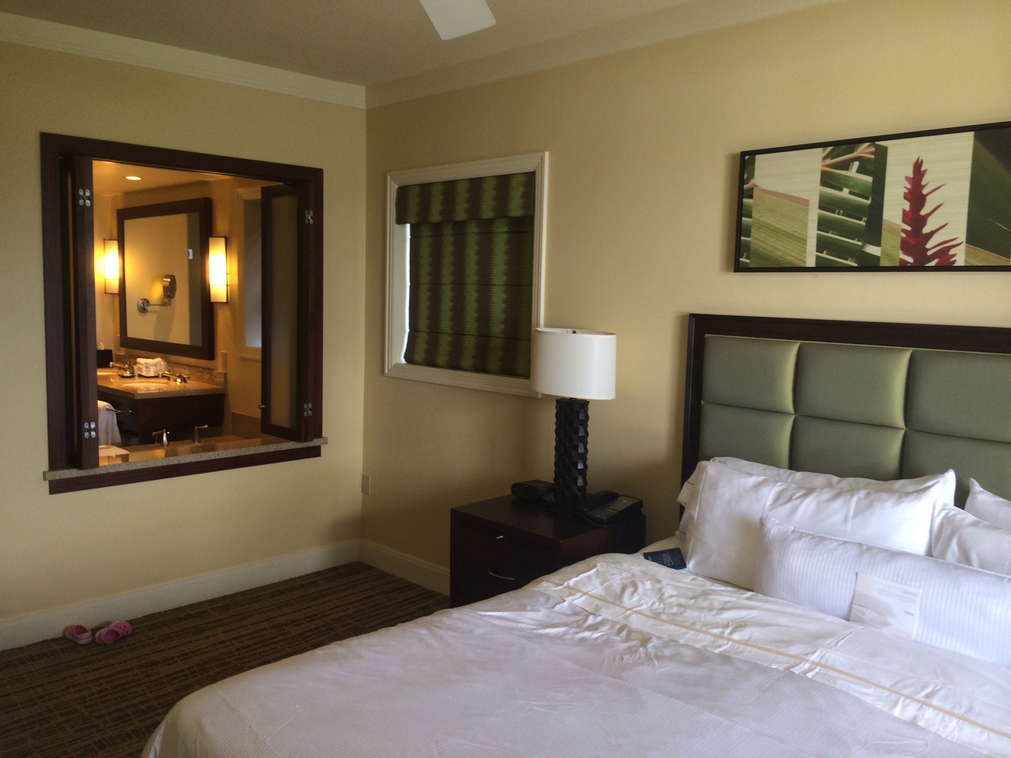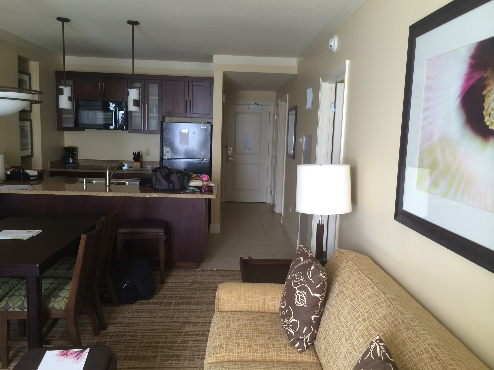 Finally the day arrived and we checked in. The hotel is comprised of two towers South and North, and eight buildings I think. The North is newer and supposedly has nicer rooms. The agent that helped me reminded me that we had booked a studio villa, and then said “wow you’ve been upgraded to a one bedroom villa, and it’s also ocean view in the North tower.” He seemed genuinely surprised too. He said this was not common and he had not seen this type of upgrade before. The way the hotel is situated, it appears that ocean view rooms are at the end of hallways and that the vast majority of rooms face the resort pools, grounds or parking lots. So we really seemed to have lucked out. I told him about our anniversary and the GM letting us know she would do what she could. So for that I have to say a big thank you to her.