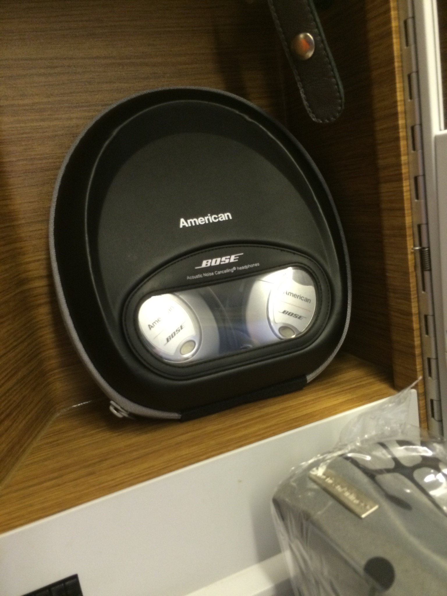 - A small storage cabinet for the BOSE Noise Canceling Headphones they provide and a selfie mirror