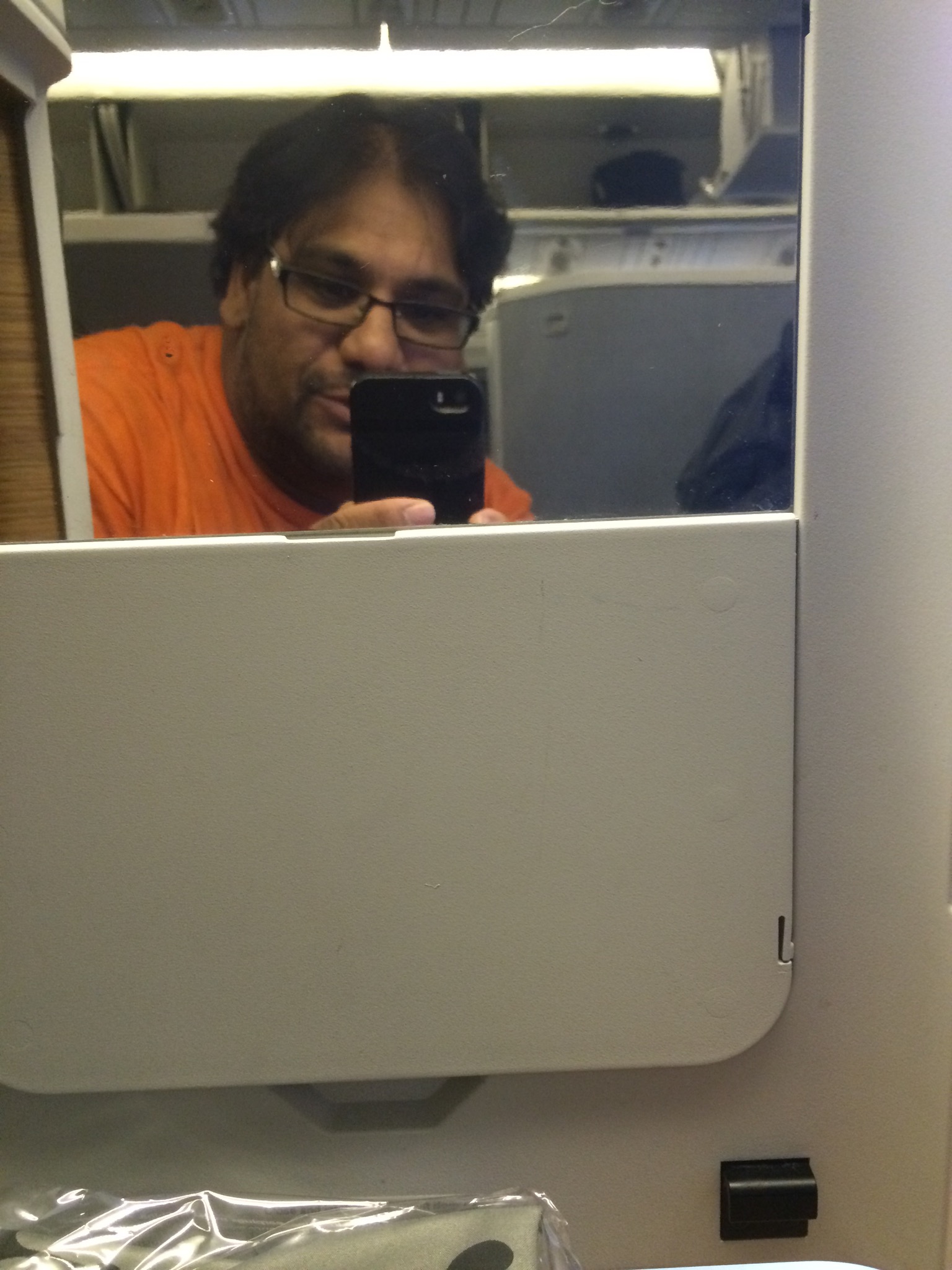 Upon boarding the plane I took a seat in 9k. This plane offers four classes of service. First Class with two rows (8 seats) in a 1-2-1 configuration with all seats offering direct isle access. Business Class has 52 seats also in 1-2-1 configuration and also direct isle access, there is a min cabin too and it offers a private feel and only 8 of the total Business Class seats. The balance of the plane has Main Cabin Extra and Economy Class. If you want a review on that products check out my review here. What I love about the Business Class seat, is that they offer a pretty darn private seat and environment. Since the seats are in a reverse herringbone pattern, the seats on the window angle towards them, and the ones in the middle angle tword each other, so with this type of setup you have a private space to call your home for the next 10 hours as was the case for me. If you’re traveling with someone else and want to talk to them the middle seats are best.