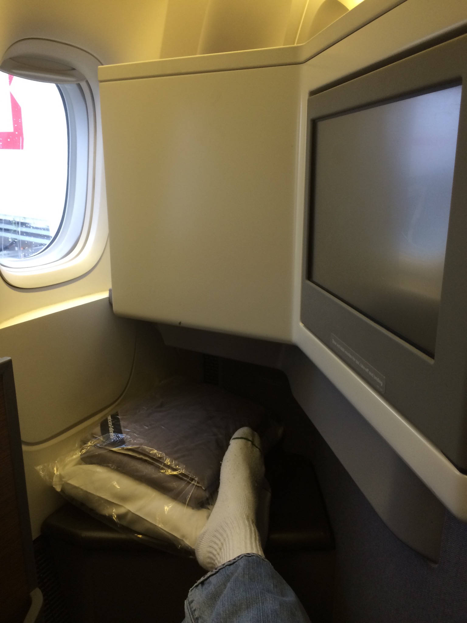The seat itself is great. As I mentioned above its super private. It’s also lie-flat and I really mean lie-flat 180 degrees flat. So when it’s time to hit the sack, you can, and be comfortable doing it. They don’t offer a duvet for the bed but do have a large pillow and soft warm blanket. If you’ve flown on the new American transcon a321’s in first or Cathay Pacific Business class you’ve had this seat before, if not check out my pictures or reviews of those planes and flights.