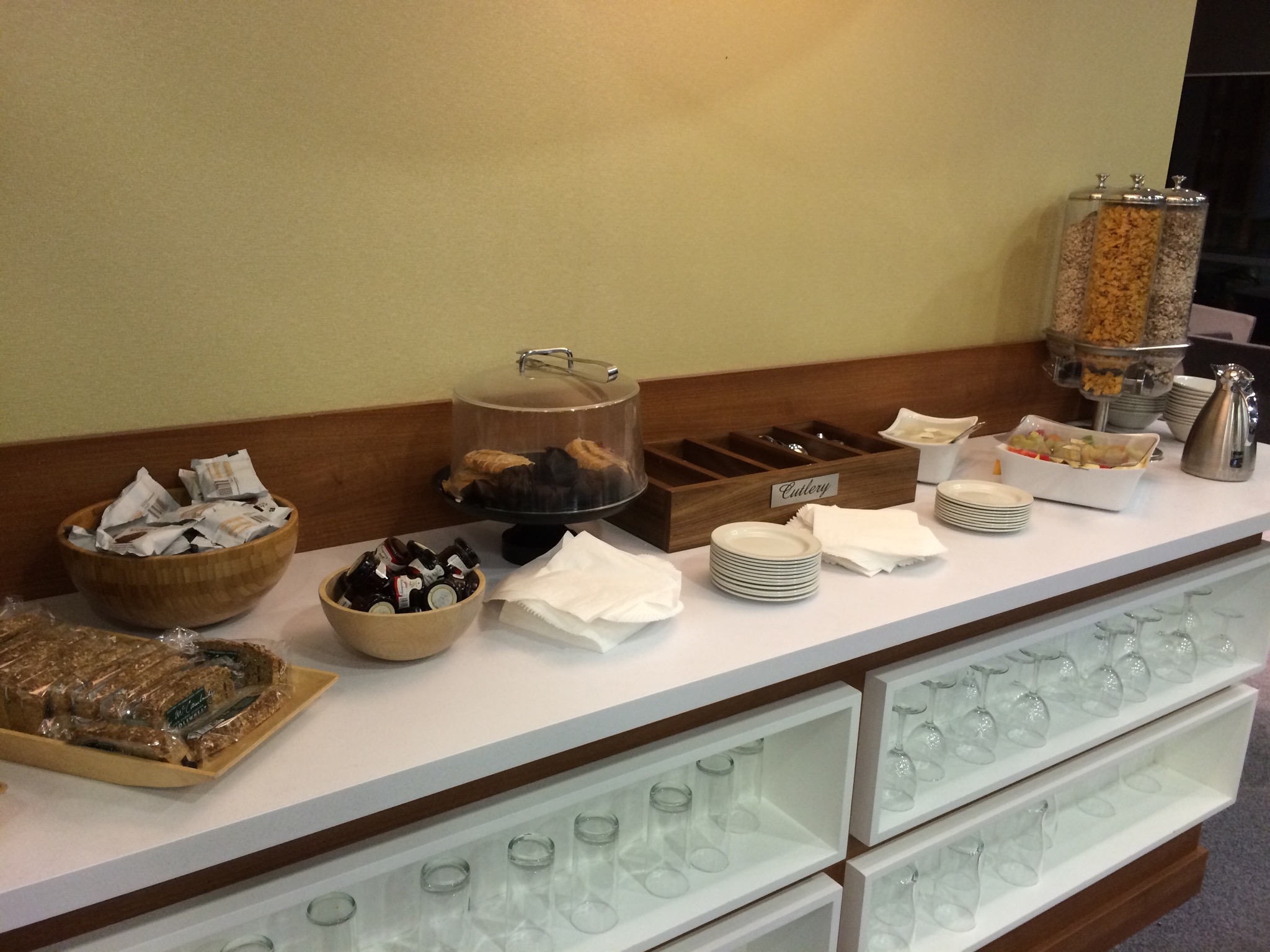 As for the lounge itself, it was not huge but did have a central check in space and then two identical seating and food areas one to the left and right of the entrance. The staff working the lounge were super friendly and had no issue giving me access after I produced my boarding pass and AA Ex Plat card. And then viola I was in. They lounge itself offered free Wi-Fi with code and also a small selection of spirits, beer, water and coffee and tea. They also had a small selection of cereals, breads and yogurt. I was here at about 6:30 AM with an 8:15 AM departure and had already had breakfast prior to check in since I got to the airport prior to BA’s check in desk opening. So what else could I do but eat.