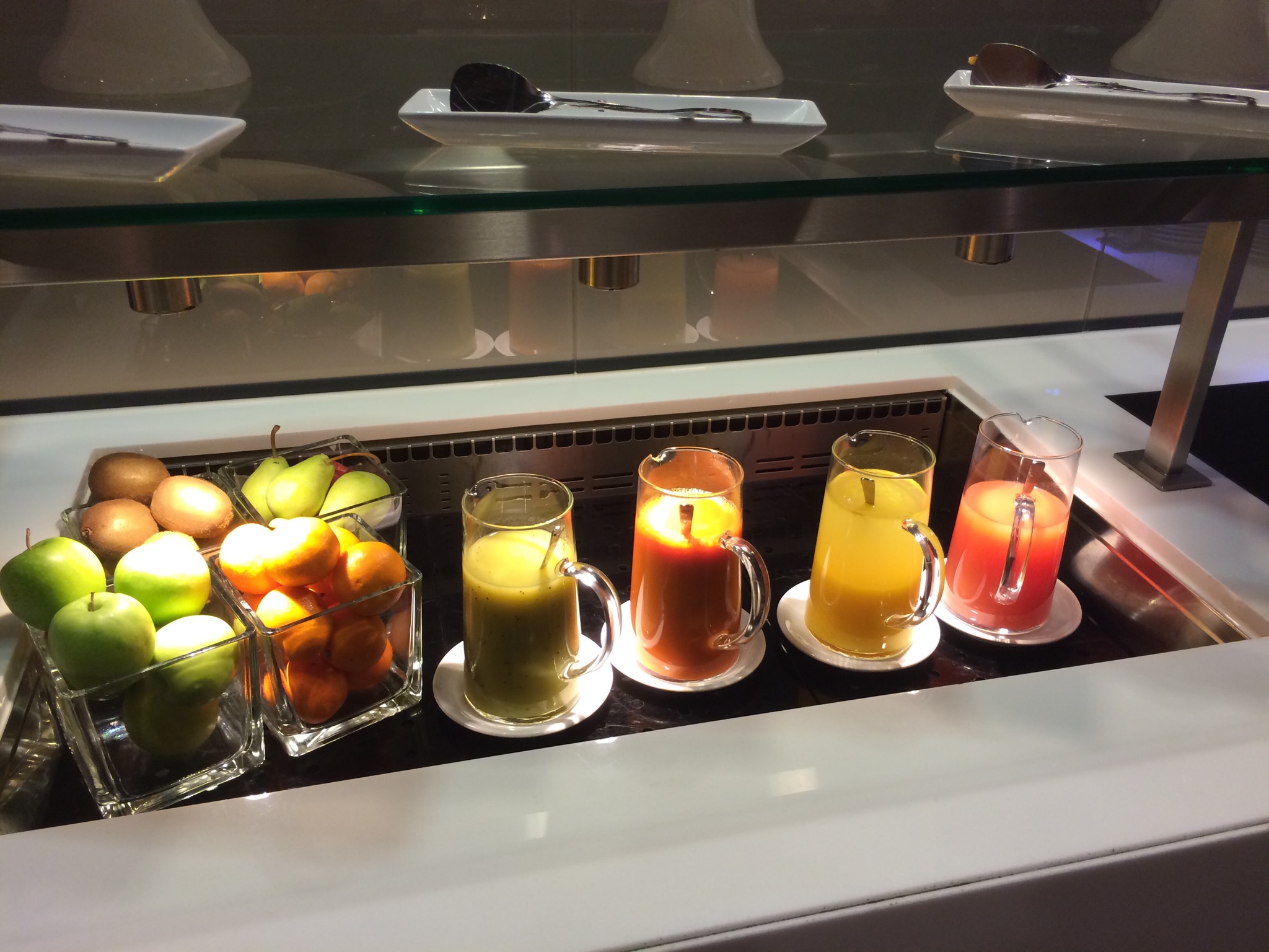 Now it was time to eat, drink and relax. The four page Whisky/Bourbon section of the menu made life difficult. Yes I said that the Whisky/Bourbon menu was four pages long!! Beyond that the menu had a ton of other high end rums, gins, vodkas, champagnes and specialty waters. This was where my wife became giddy as a school girl, her favorite water is VOSS, and they had it here. She said once she saw it, she was going to have at least four of them, and I know she had that many and maybe even two more. Sure you can get it at home but when its 4 bucks for a 500ml bottle, and you can get it for free, it would be like me ordering a glass of JW Blue. Go figure. It’s just water to me. The hardest part for me ended up being what to order, since it was close to 10 AM and I’d basically I’d been up for two days. So I just went with Perrier-Jouet. Eventually I moved over to what my best friend calls the Devils Dayquil Laphroig 18. And boy was that a fun glass, and most likely my last glass ever or this fine fine product. Needless to say the bar menu was worth its weight in gold and if I ever have a chance to visit this lovely goldmine of a lounge again, I’ll be sure to have eaten less and drank less on the plane before getting here. Yeah right that’s not going to happen, I’ll just have to try harder next time.
