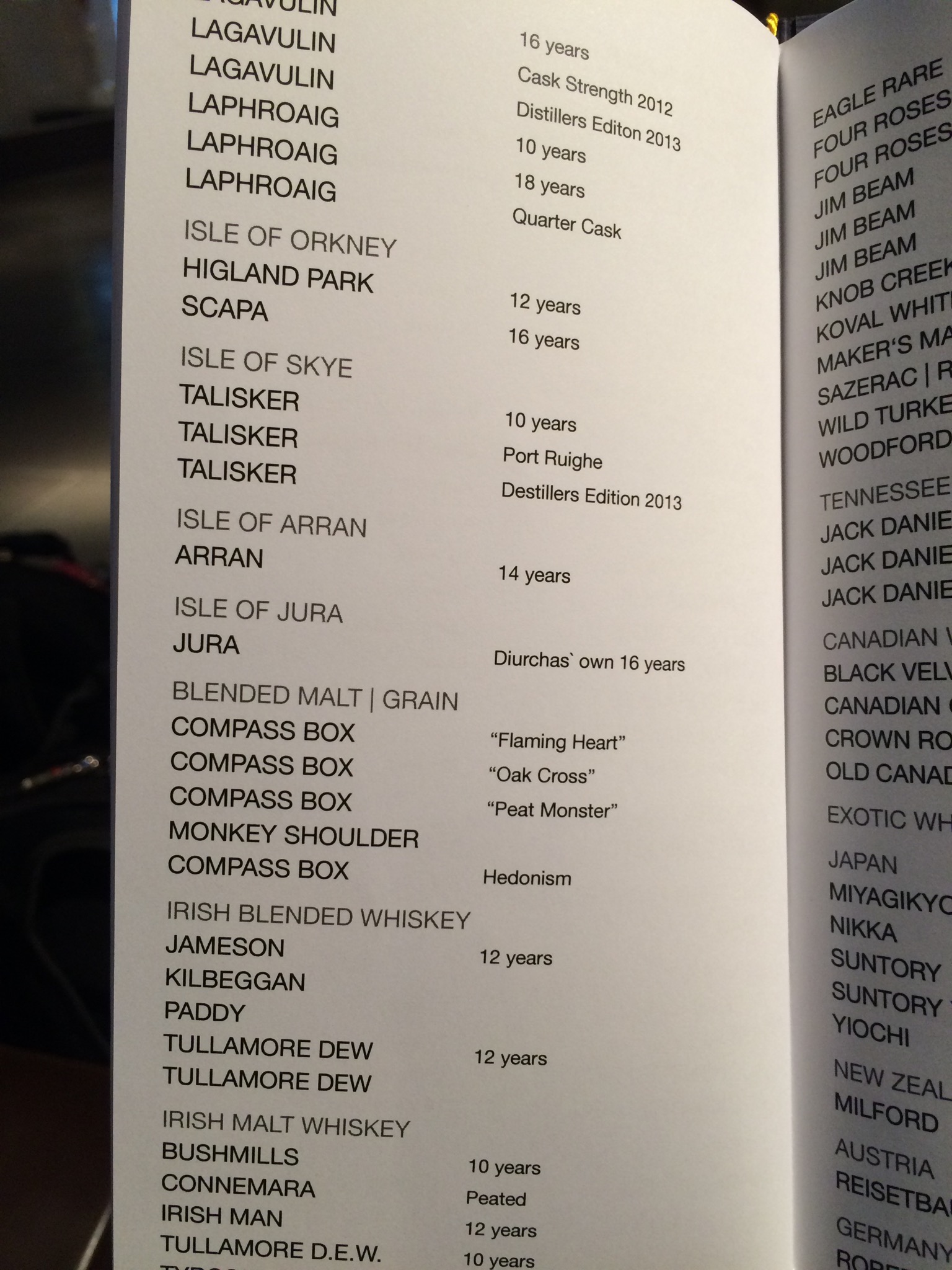 Did I mention they had four pages of Scotch, Whisky and Bourbon’s