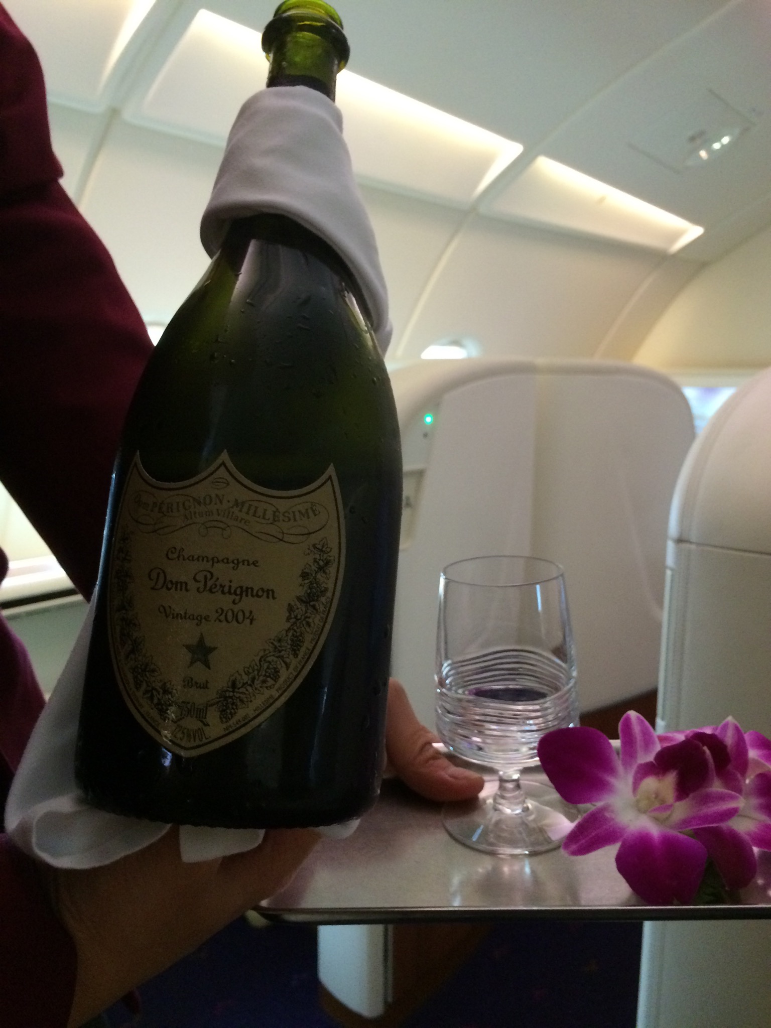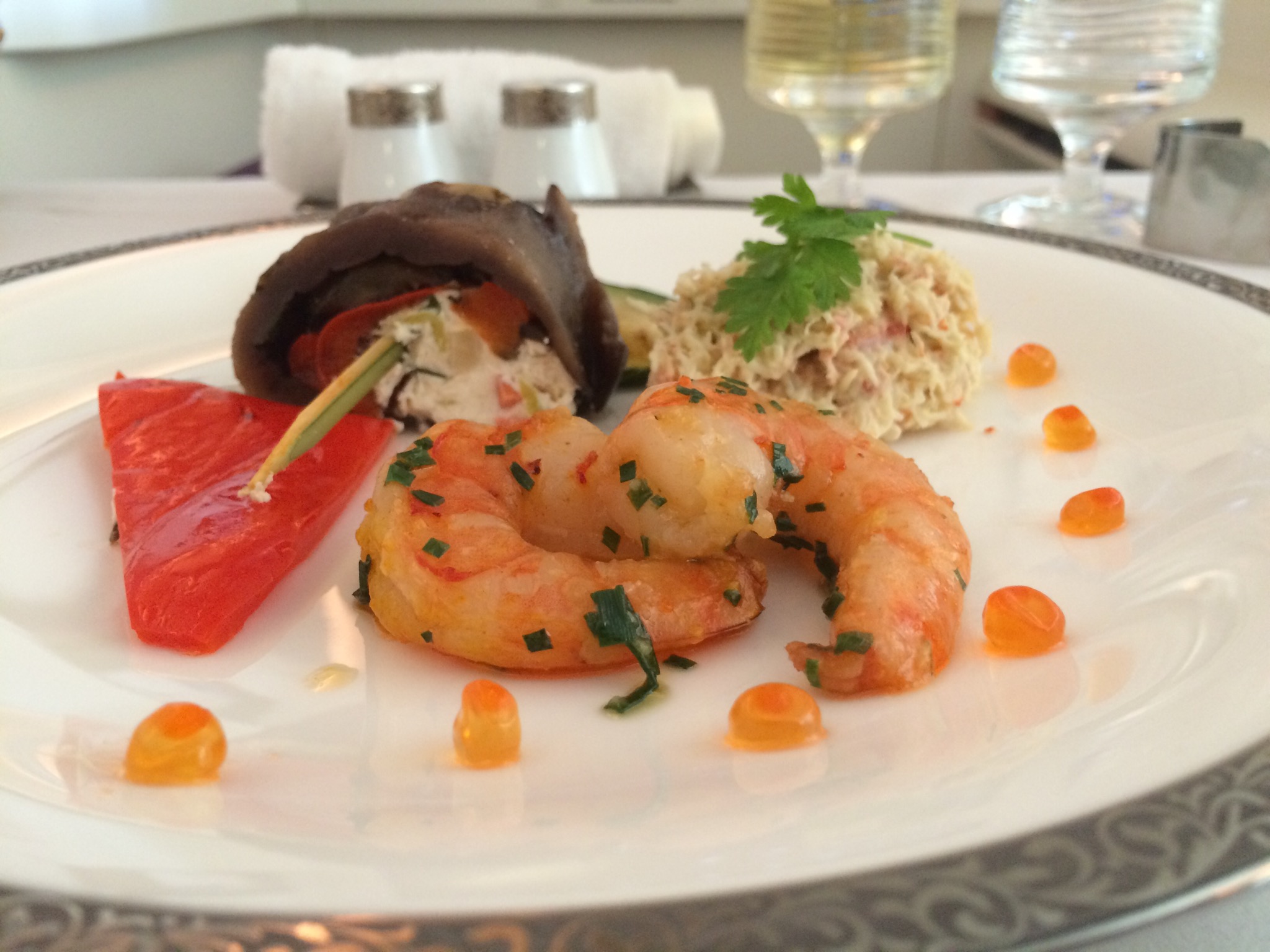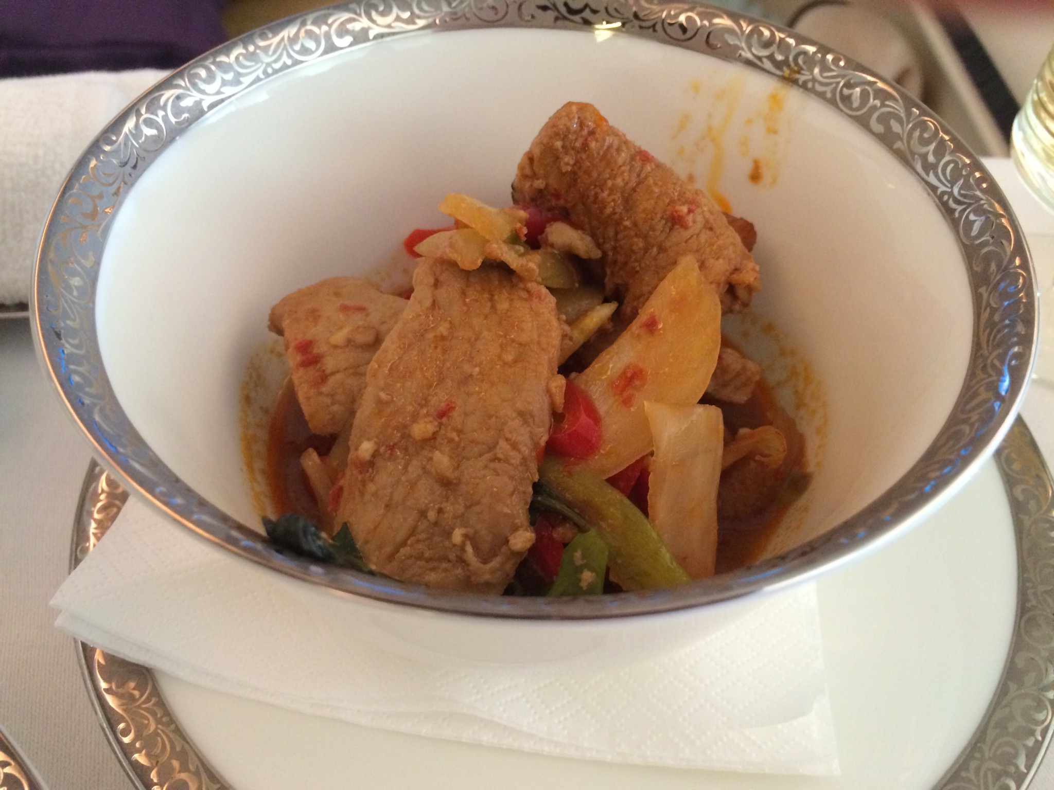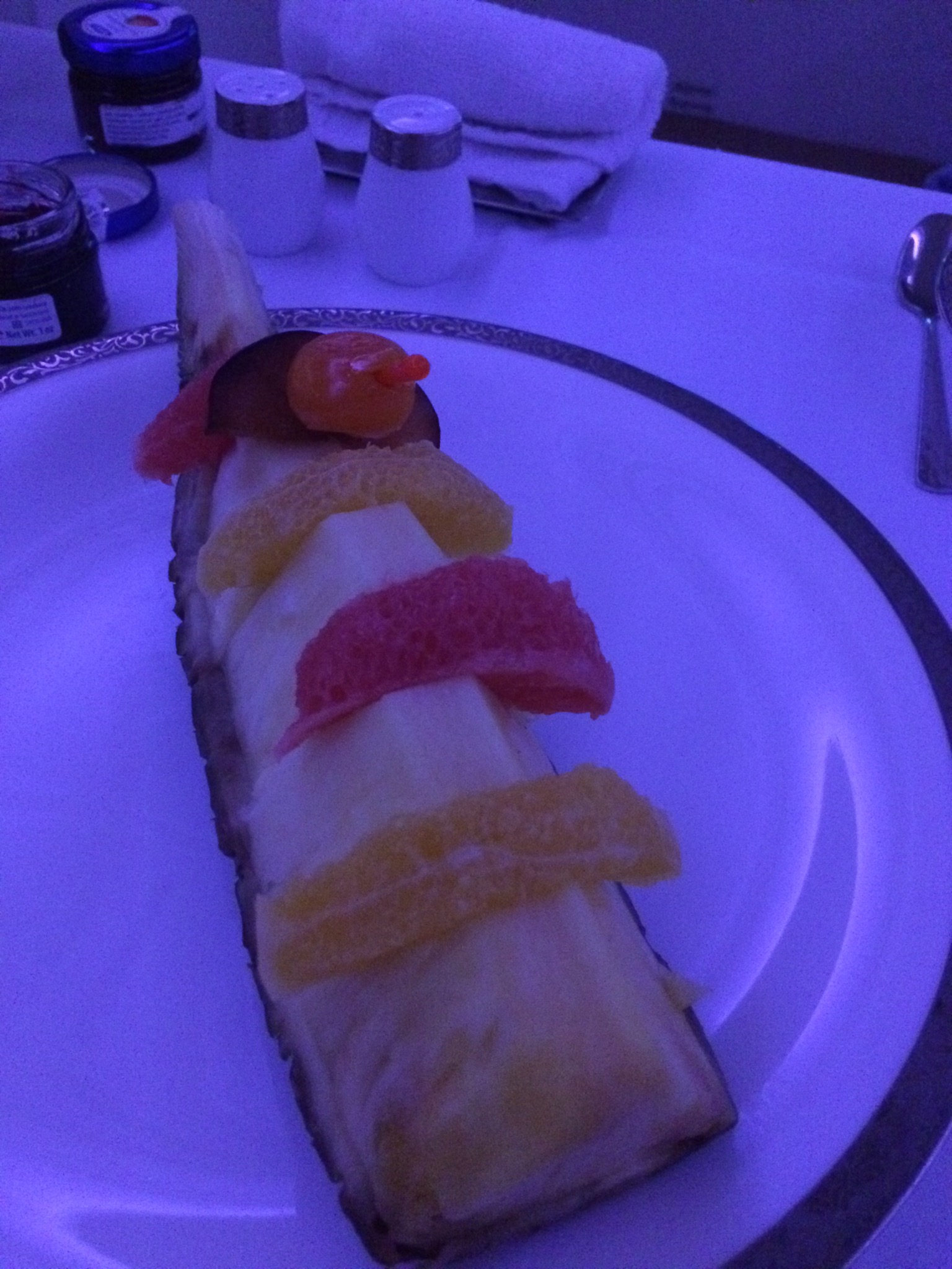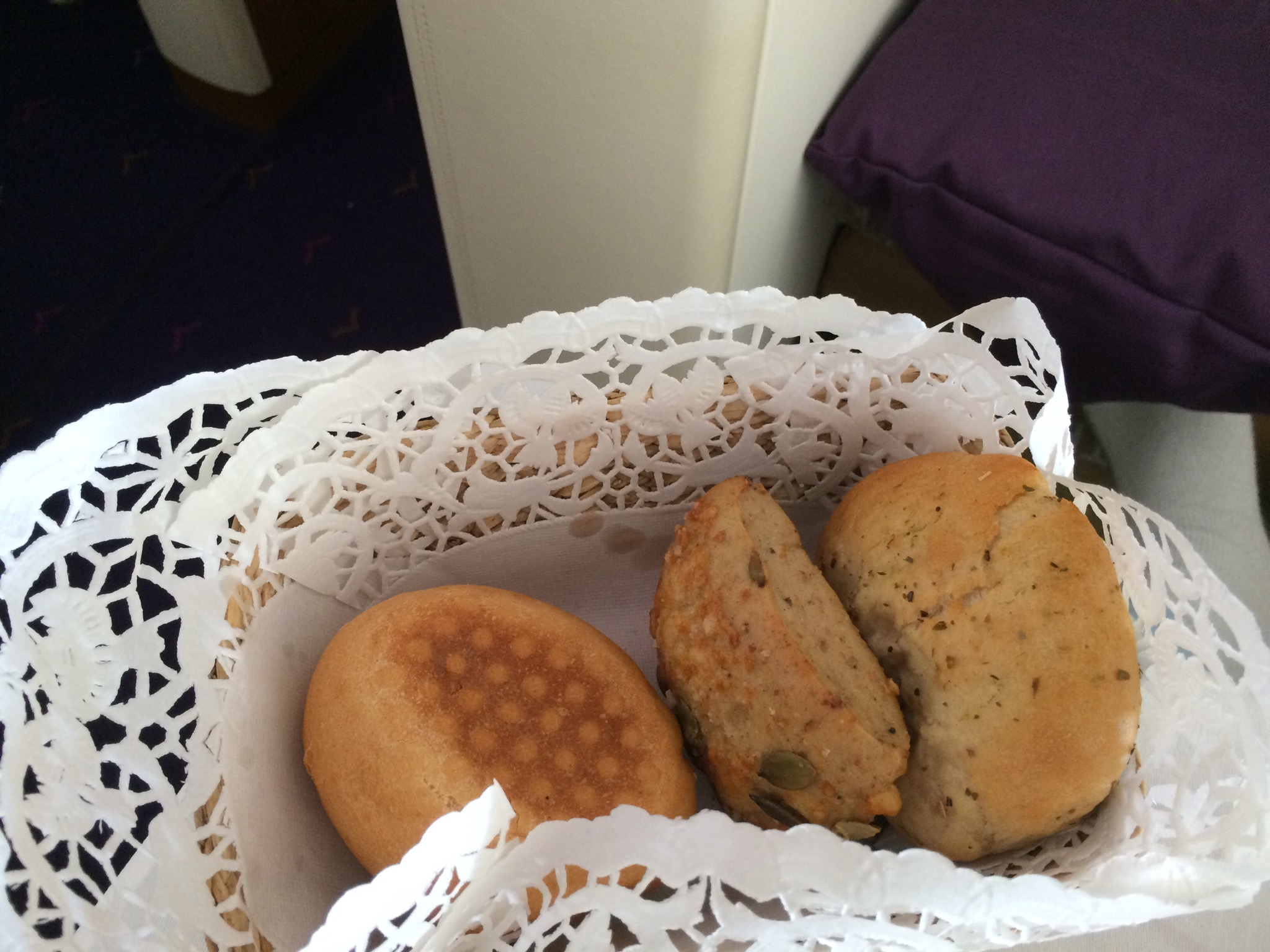 The food was nothing inspired, but at least the Thai selection was good. Online they have over 17 different meals you can choose form and that’s before you look at dietary or religious options. So to only see three choices and none too inspiring was disappointing. My only gripe was that they had two breakfast options, and when we ordered all our meals at once, we we’re told that they only had one more breakfast crepe. And either we could share or one of us cold get the egg dish. I know this is grasping at straws here, but you don’t run out of food in first class. Besides, how did they choose us to shaft? There were 8 others on the plane, don’t they know who I am?