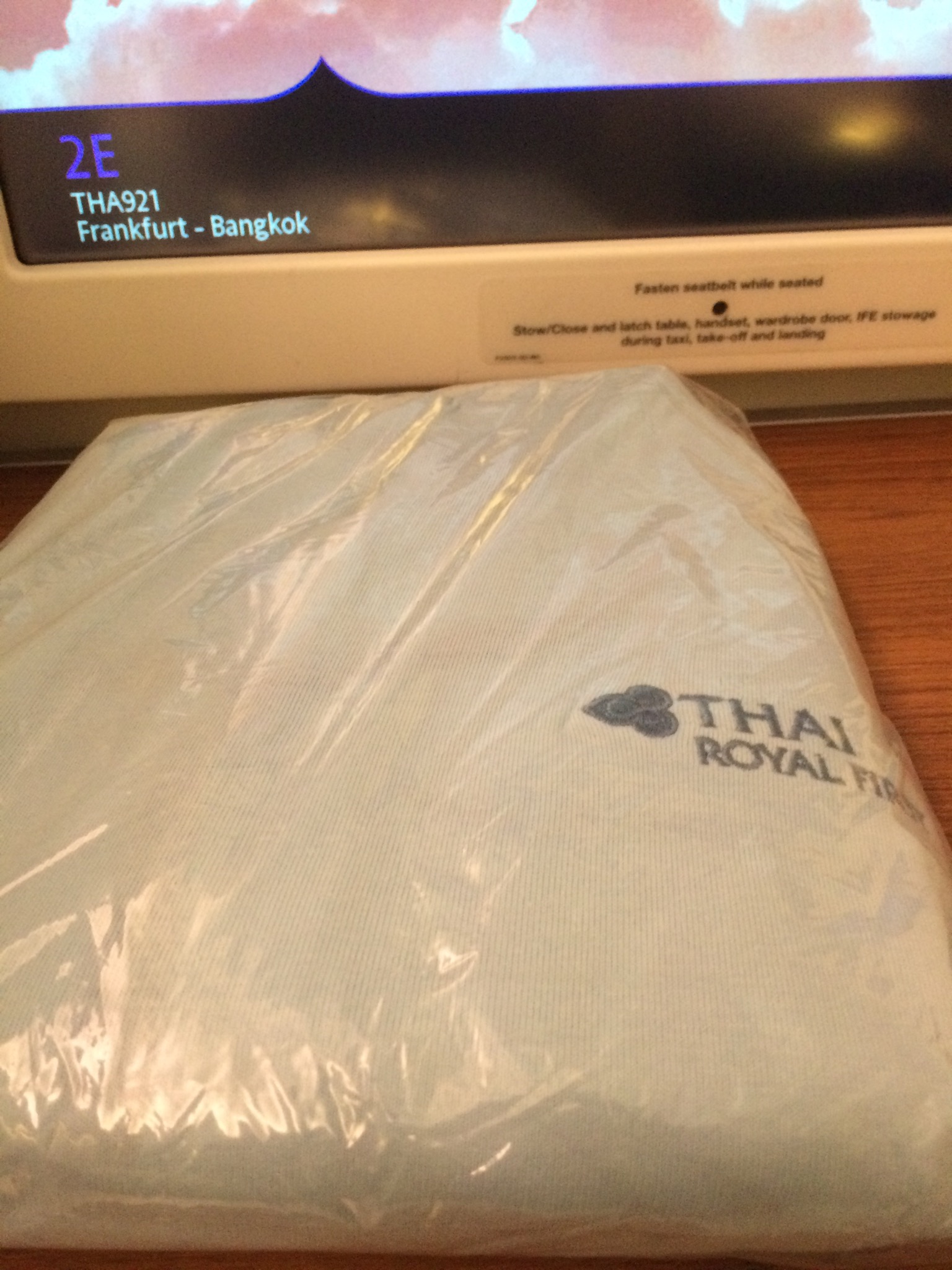 Somewhere during the flight I got tired. You’d think after working in Portland on Thursday night, getting home at 1:30 AM Friday morning, finishing packing and leaving the house at 6 AM, so we could drop off our kid. Then flying to Seattle, hopping on a 1o hour flight to Frankfurt with a four hour connection, it wouldn’t have taken this long, buy I finally called it a day and went to bed. Frankly I’m just tired writing that paragraph. So I gladly took up the staffs request to trun down my bed. They pulled out duvet, and covers and a full size pillow and I was set Not bad for a fully lie-flat bed and a TV to pass the time. Oh yeah it was pretty darn comfortable too.