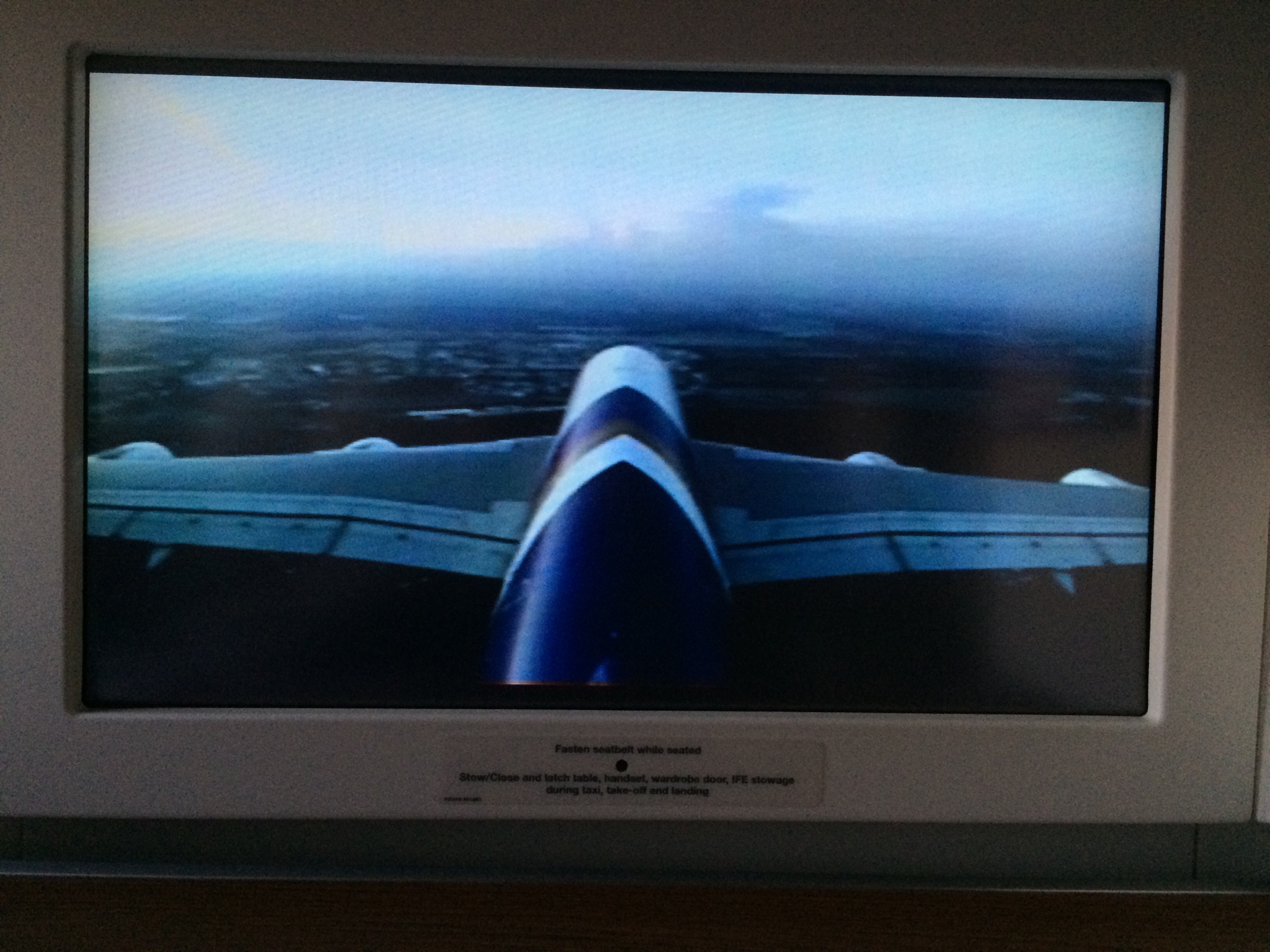 The TV (not too shabby) and the large tray table that does move front and back. Speaking of the TV and entertainment was just ok. They had about 20 English movies, and a bunch more non-English ones. I think if I had not flown to Dublin (2 weeks prior) and literally just got off a plane from Seattle, I may have been fine with the selection. But flying that many miles in such a short period of time didn’t afford me many new options that I wanted to see. I still say if you’re looking for lots of current TV and movies look at Singapore, Cathay, United (on a newer plane w/in-seat AVOD) or Emirates. They all have superior selections. I ended up watching Maze Runner and Catching Fire, and that’s four hours I’ll never get back.