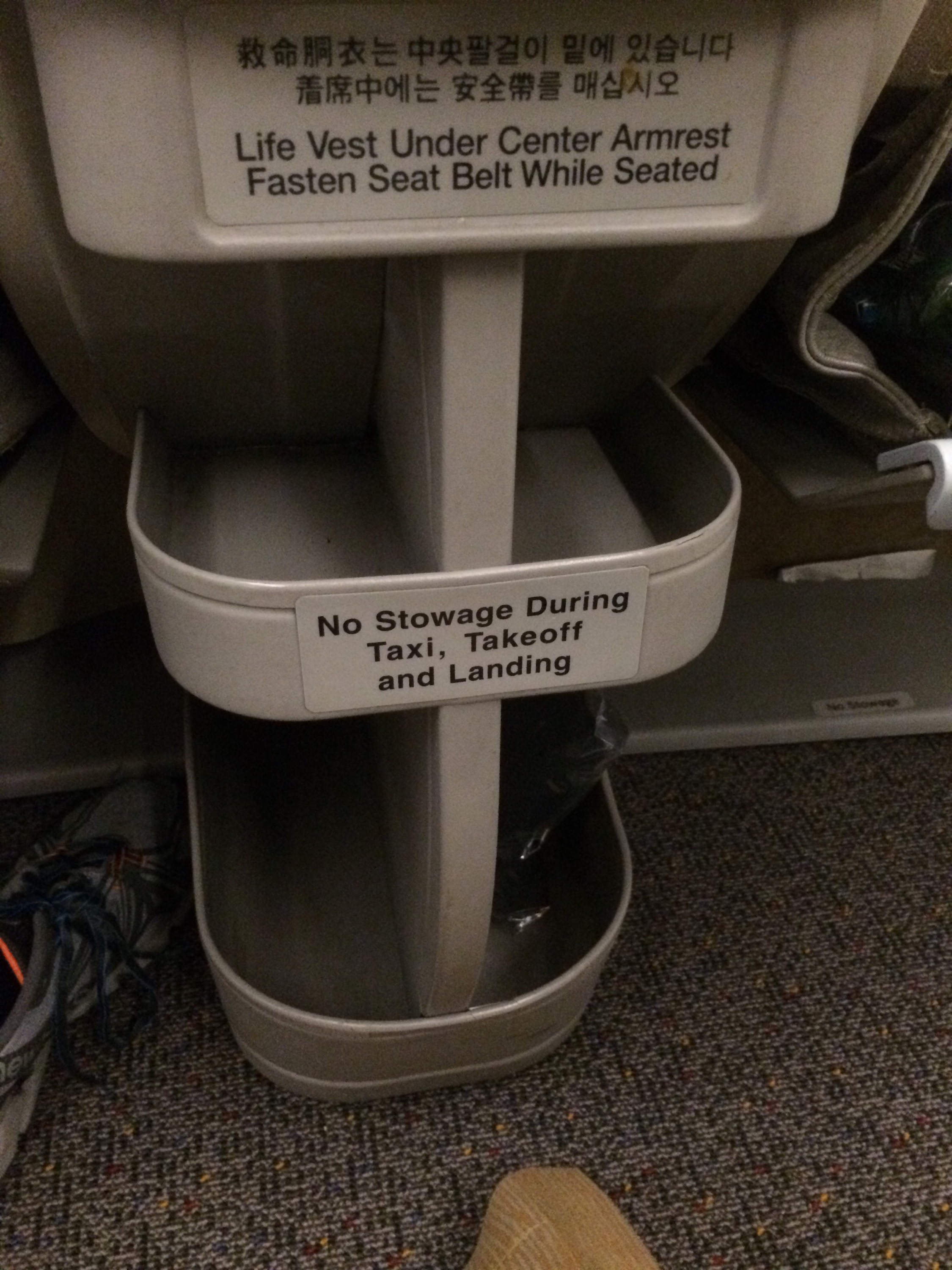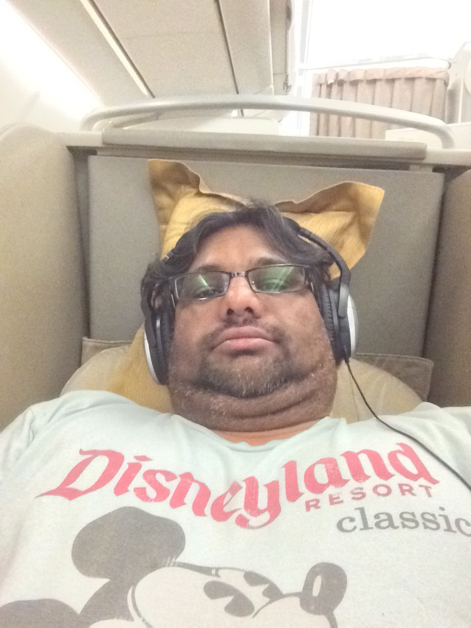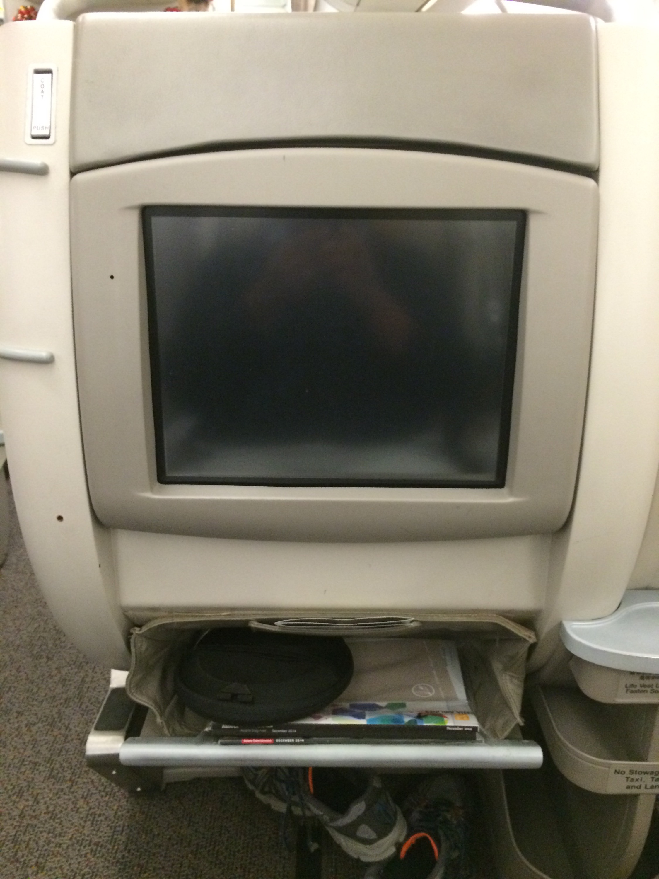 I stayed up as long as I could, but frankly that was as long as it took for us to get wheels up. As soon as we took off I put my chair in recline put on my eye mask and hit the sack. Regardless of whether this seat reclines or not I would have been asleep in no time. I was tired and just needed to get some shut eye. During our vacation I can’t think of a night I had stayed up later than 10 PM and since it was way past midnight, it was bedtime. That being said in this case the seat was not lie flat it was angled flat. I know does it really matter when you’re talking about a seat with lots of legroom and some sort of lie flat component, but yes there is a difference. In this case it’s a comfortable seat and would do just fine for a five hour flight, even for a redeye. Now if this was a longer trip, I would want a more comfortable seat, but for what I needed it was just fine.