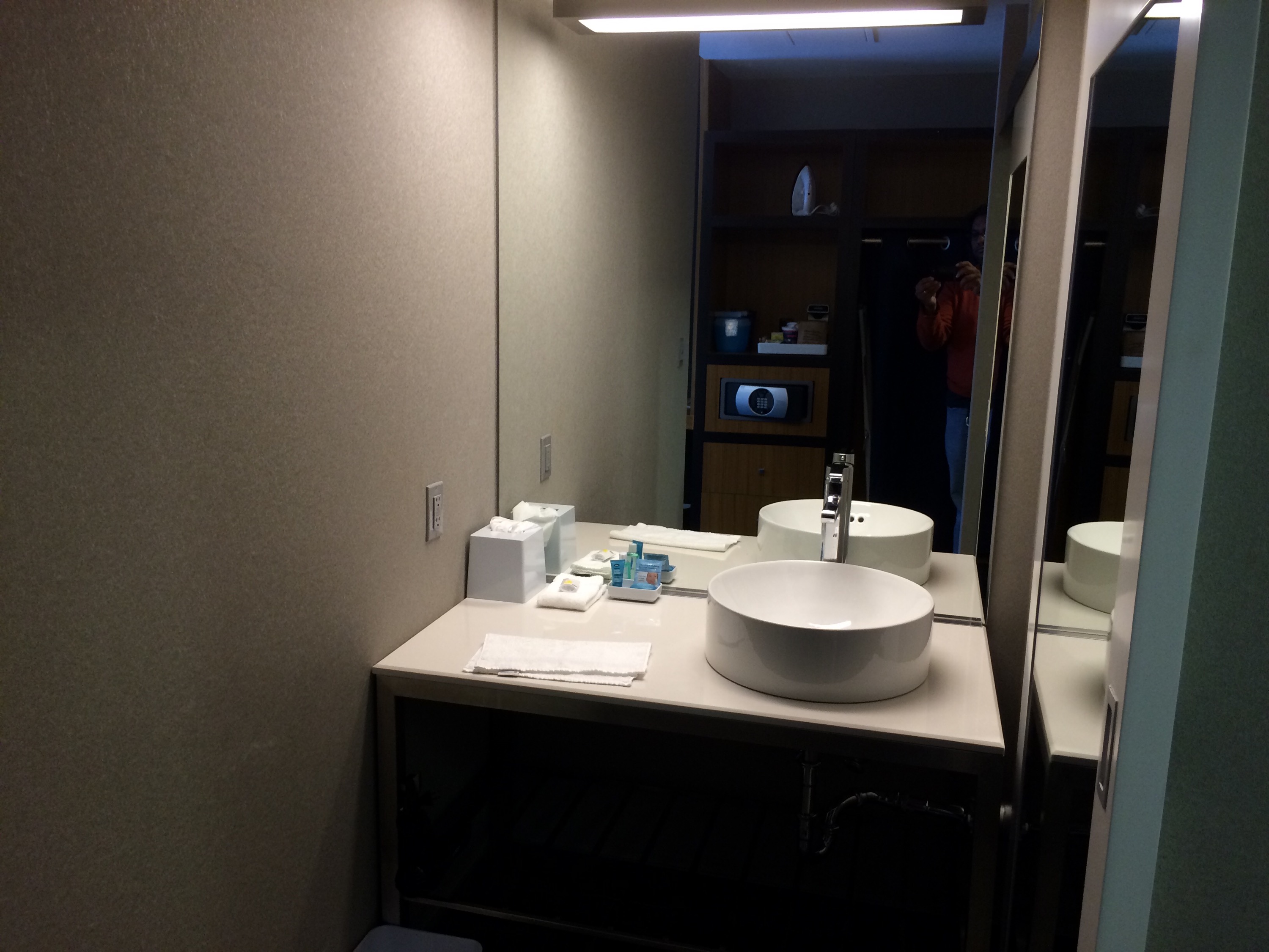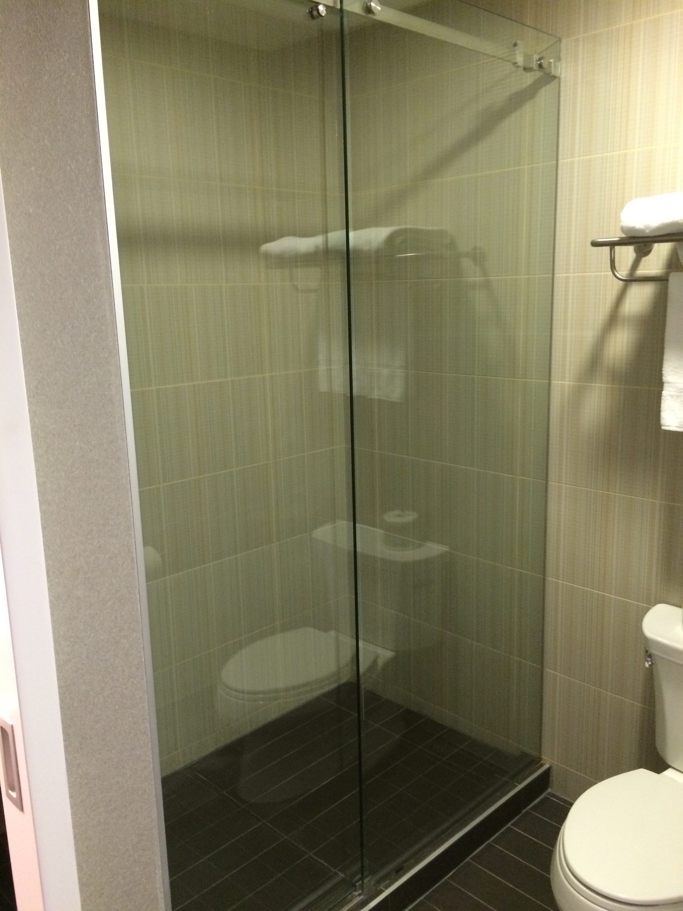 As for the rooms they are as cookie cutter as any other location down to the bedding, pillows and phone. There’s almost something funny about how every one of these hotels is exactly the same. I fear one time I’ll wake up and wonder which location I’m staying at. The only thing different about this particular room, was that the shower had a sliding door and not a door you open towards you. And the sink was just a bit different too. Again nothing major at all, but when I say these rooms are the same from city to city and state to state I mean it.