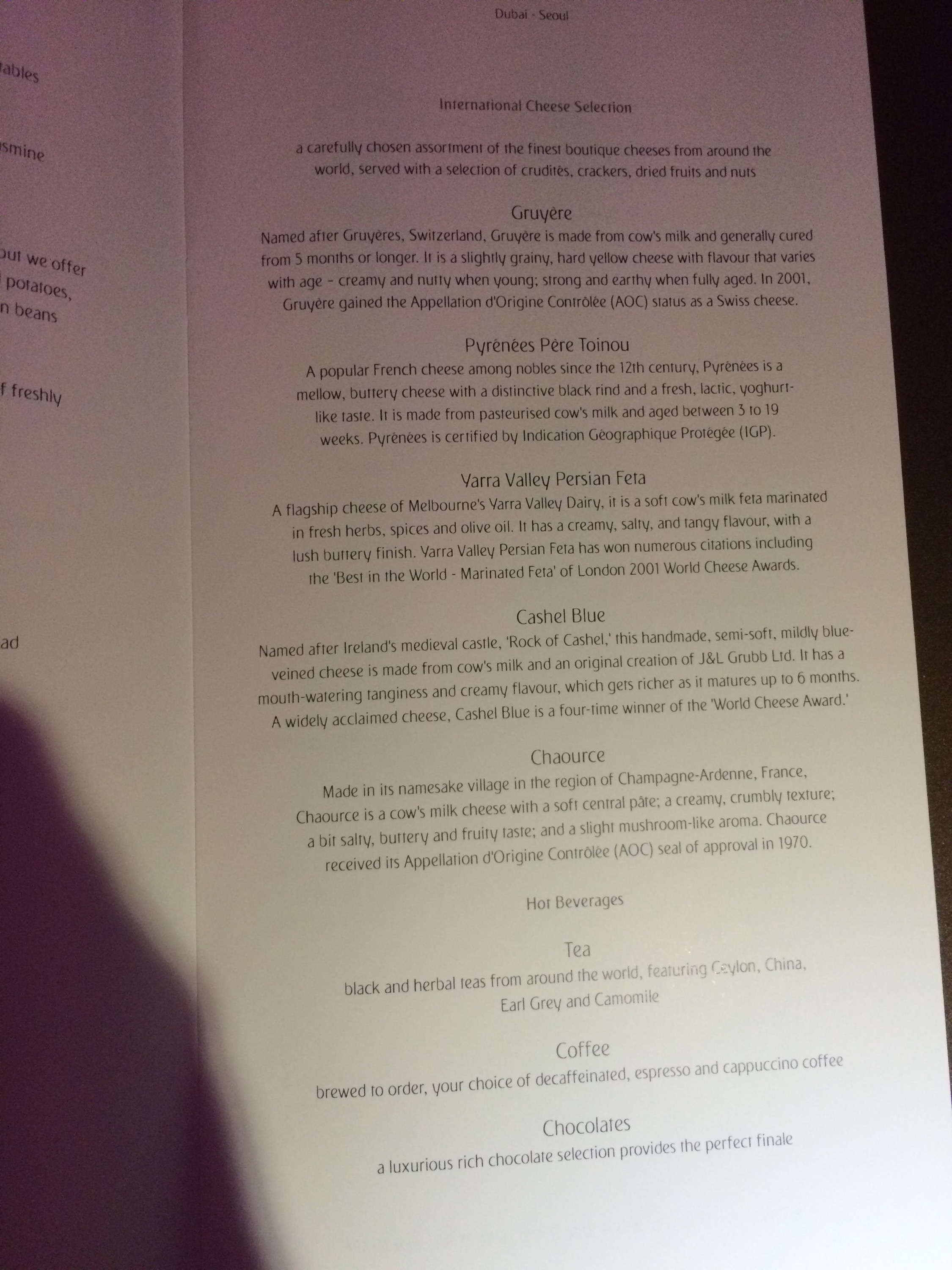 The dinner and drink menu. Because they offer a la carte dining. You get to choose what you want when you want and I suppose how much too. I didn’t eat a ton, but on two flights I was not denied a darn thing, let alone have them run out.