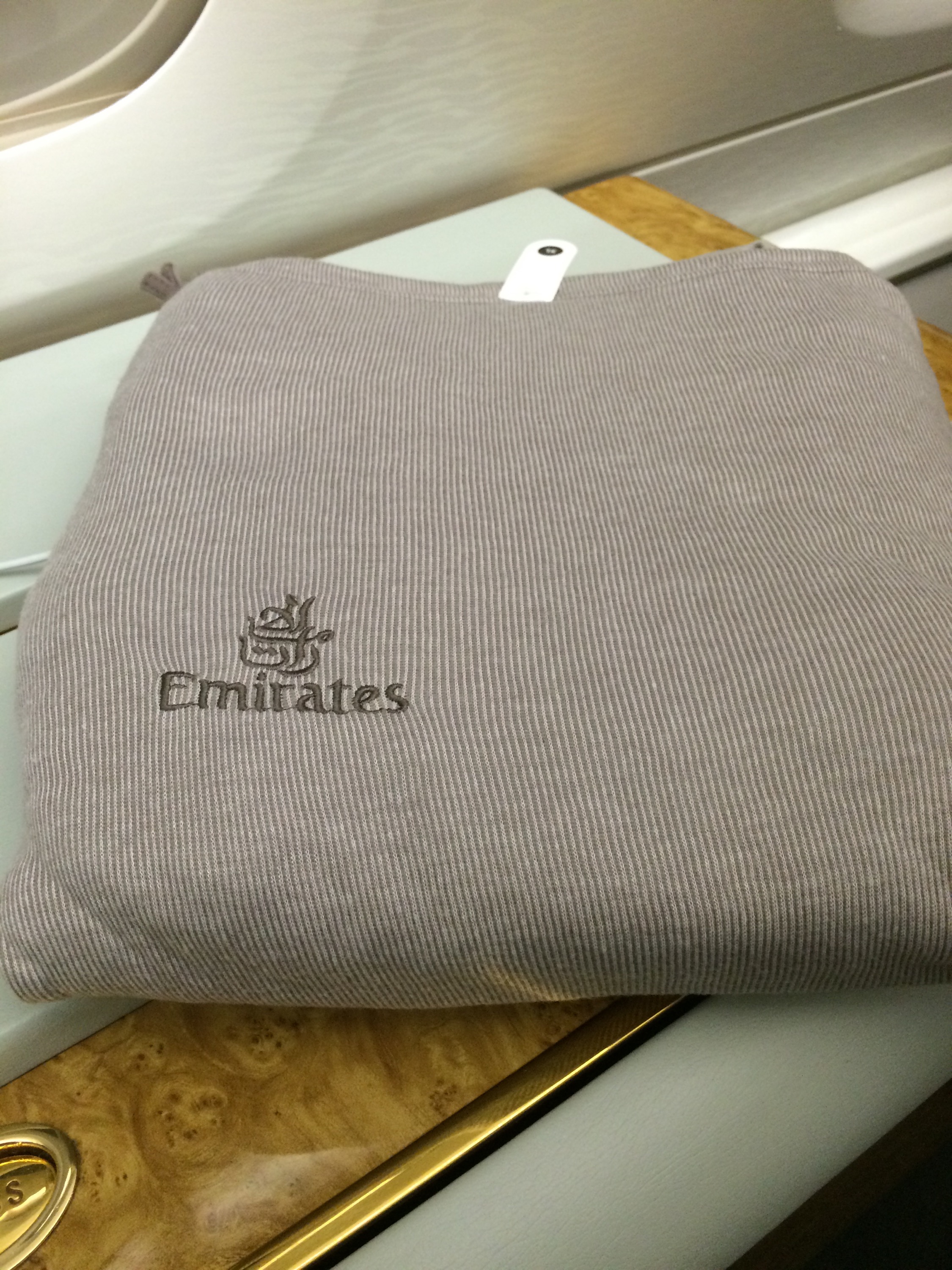 I really loved the seat and space, plenty of room to relax and enjoy a good Dom 2004 and a crappy movie. Emirates subtly hits you over the head with amenities. Ranging from a lie flat seat, sliding doors to your suite, an iPad control center, electronic double window shades, desk lamp, personal light, vanity mirror, and yes I needed it. Additionally it offers a mini-bar , storage closet for your clothes and no they don;t want you to fly naked that’s what the comfy pajamas are for!! Finally, they provide you with slippers, eye shades and a pretty cool amenity kit.